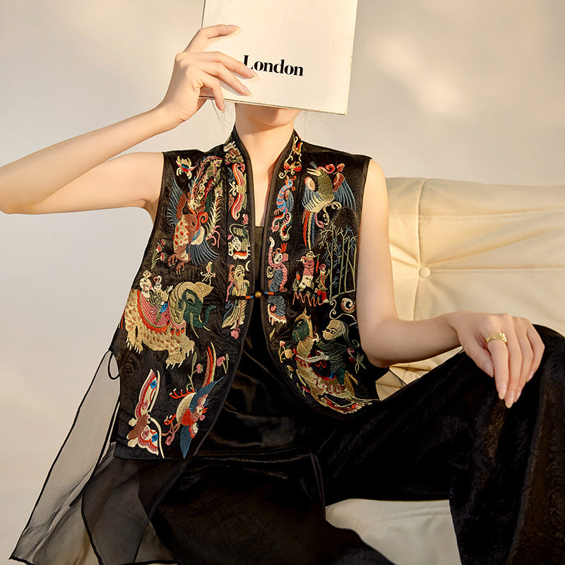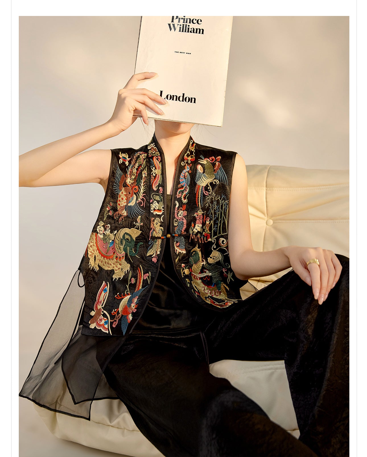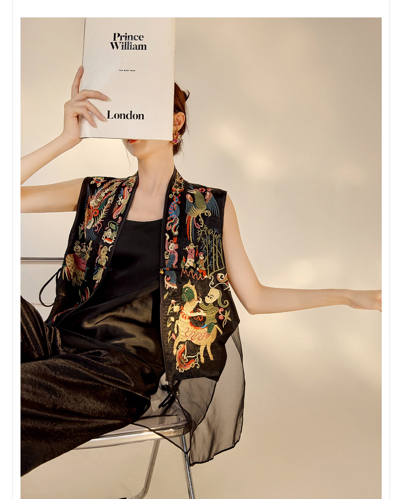 2026 New Chinese Style Silk Embroidered Mesh Patchwork Vintage Vest