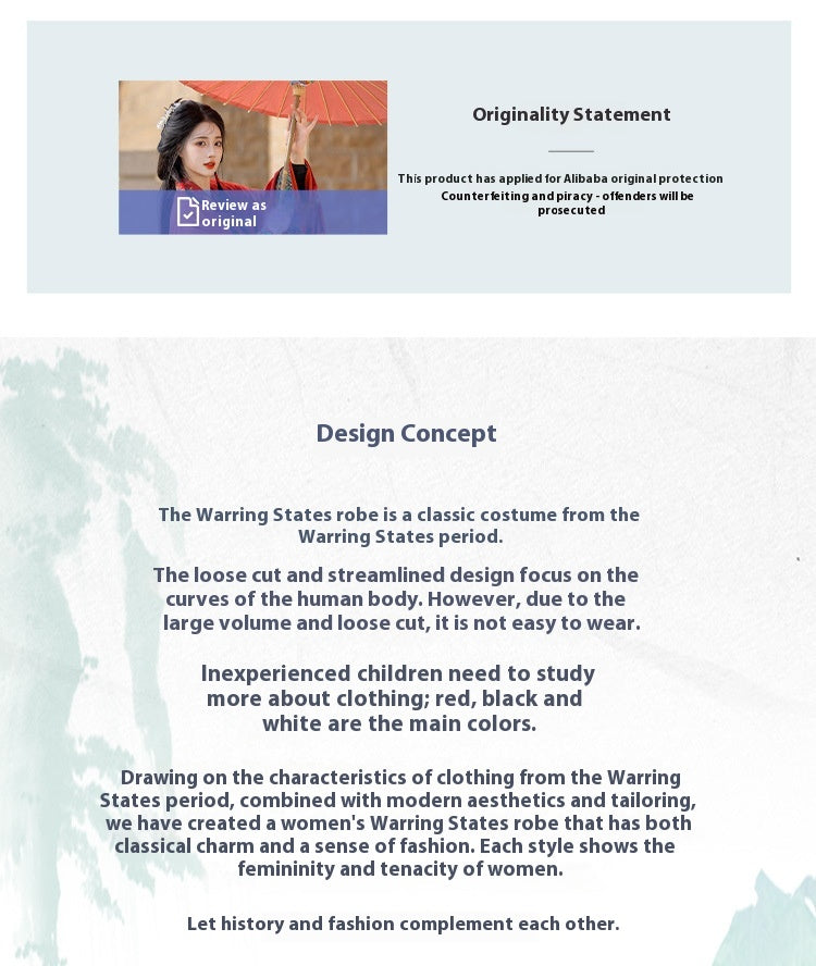 Warring States Hanfu — Straight Skirt Robe with Large Volume Tail for Women