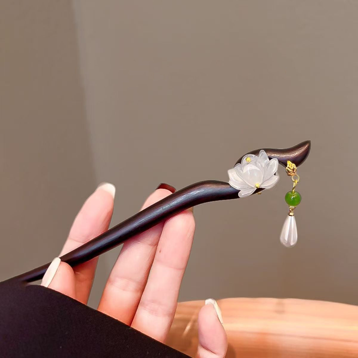 Lotus Sandalwood Hairpin | Ancient Style Tassel Step Shake Accessory