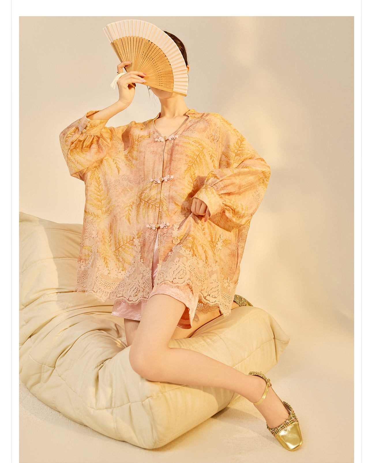 Autumn Chinese Style Lace Patchwork Shirt | Slim Embroidered V-Collar Top