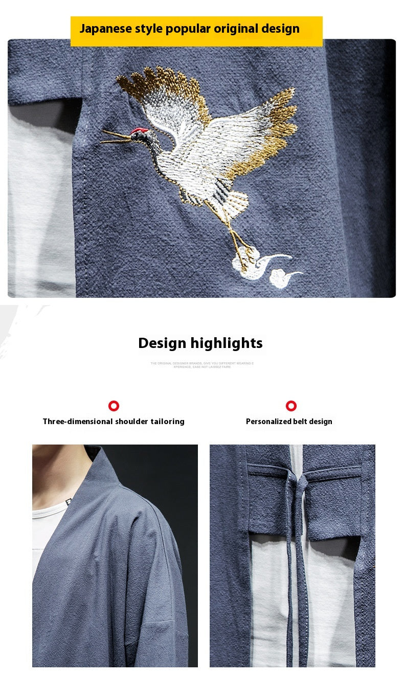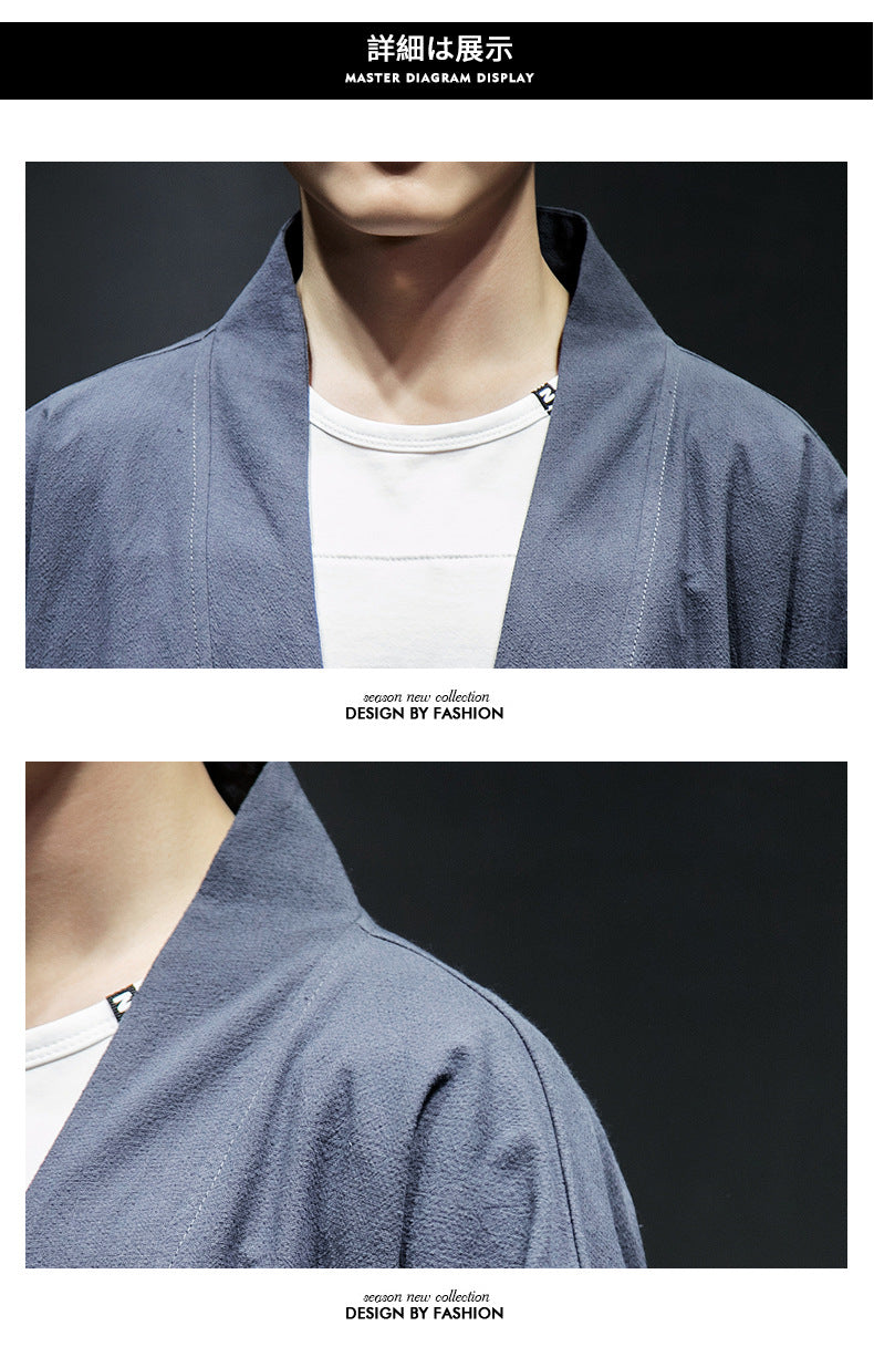 Mens Chinese Hanfu Taoist Robe Retro Kimono Jacket Trendy Top