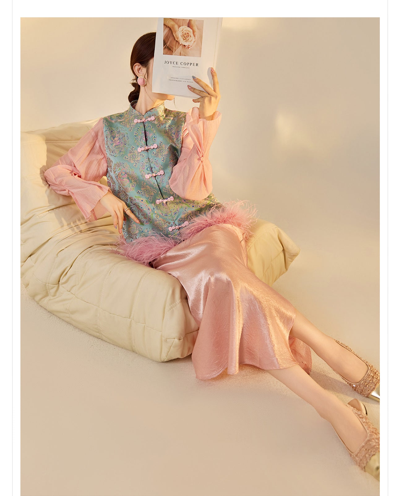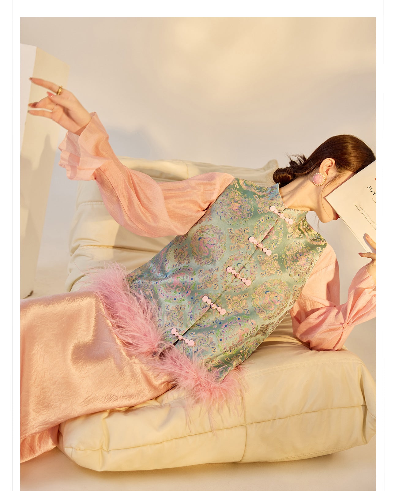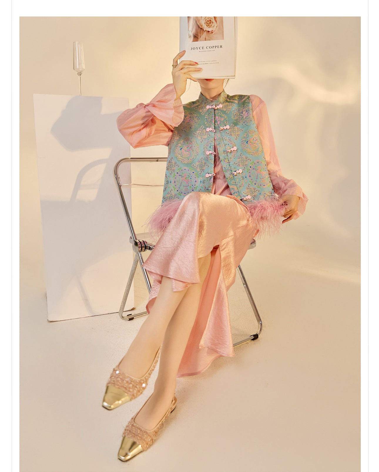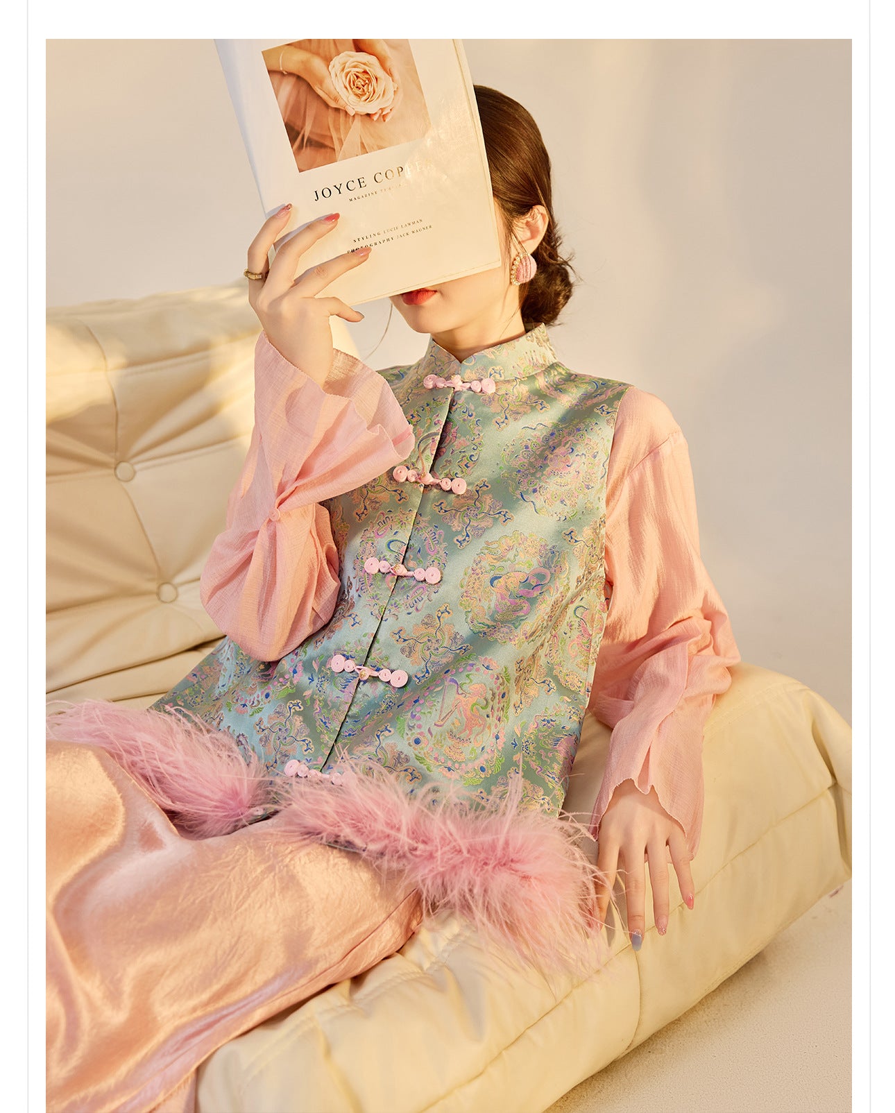 Ostrich Feather Detachable Vest – Elegant New Chinese Style Top