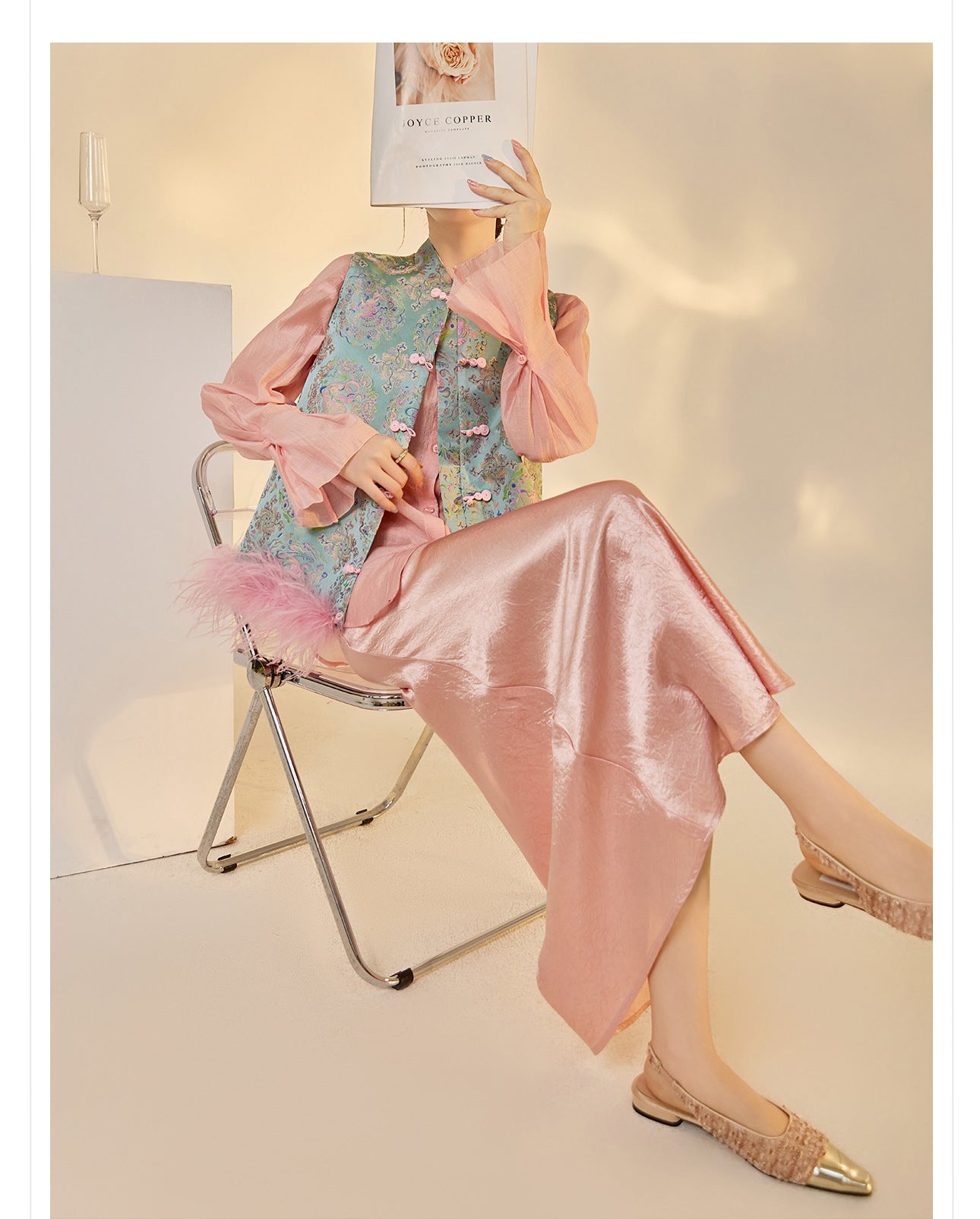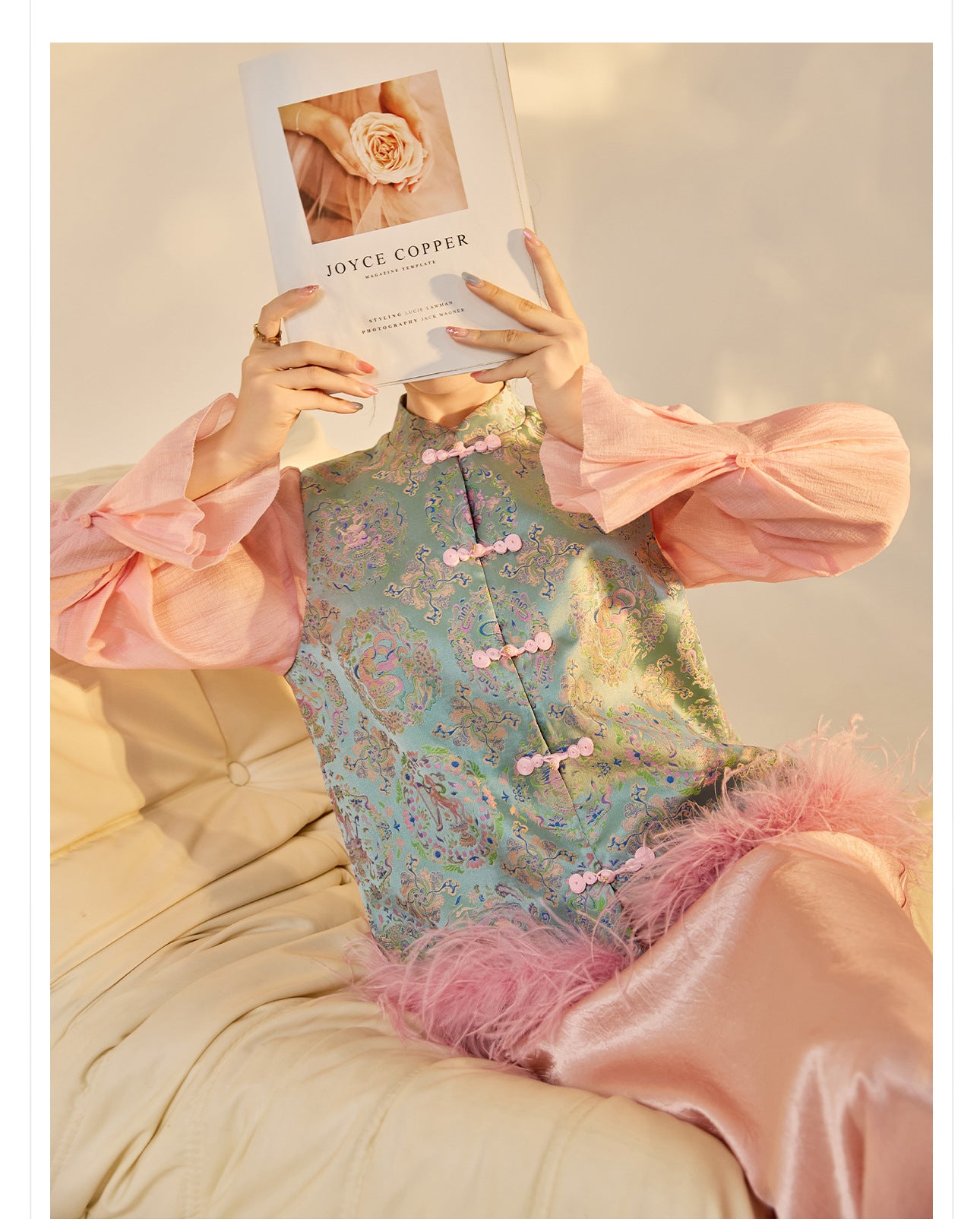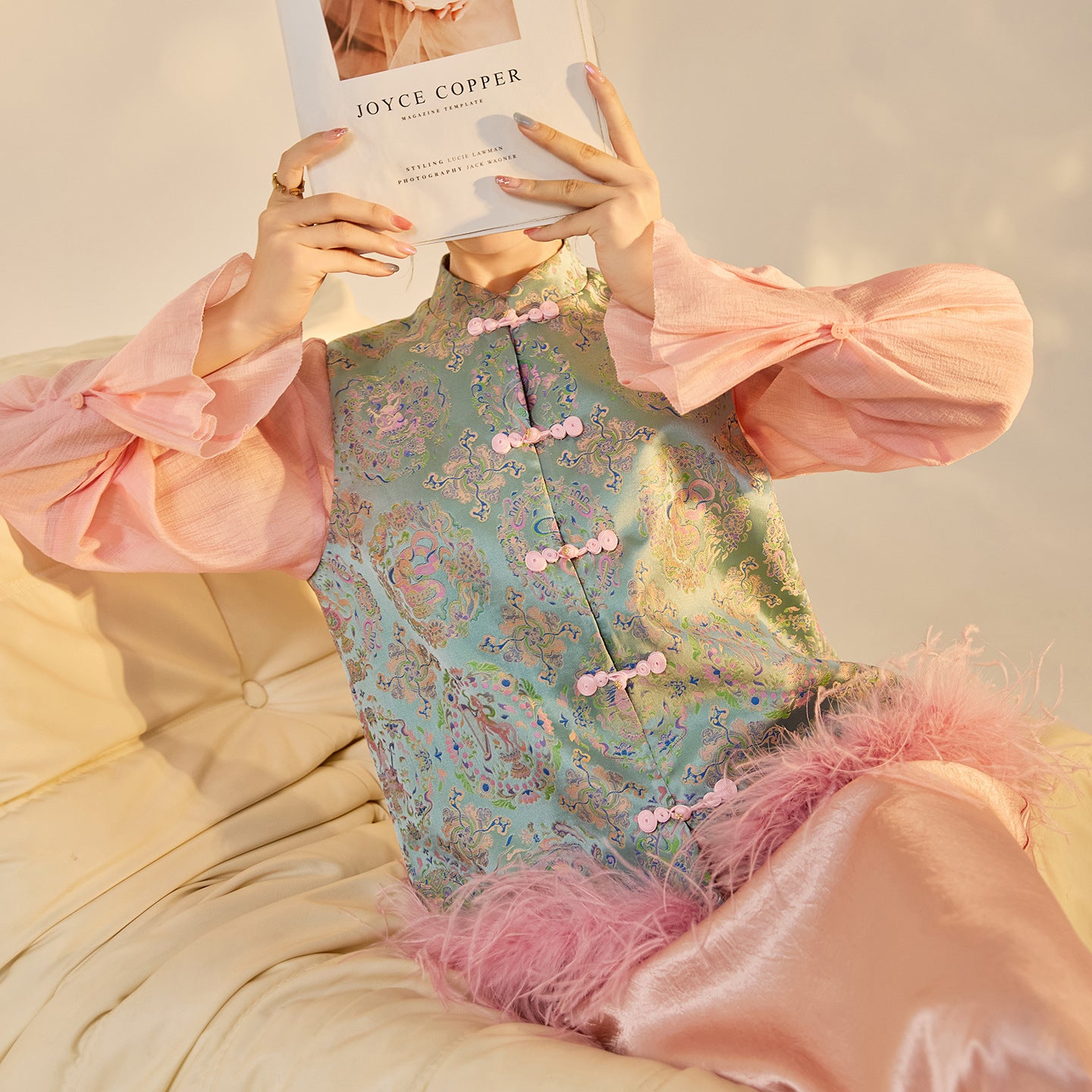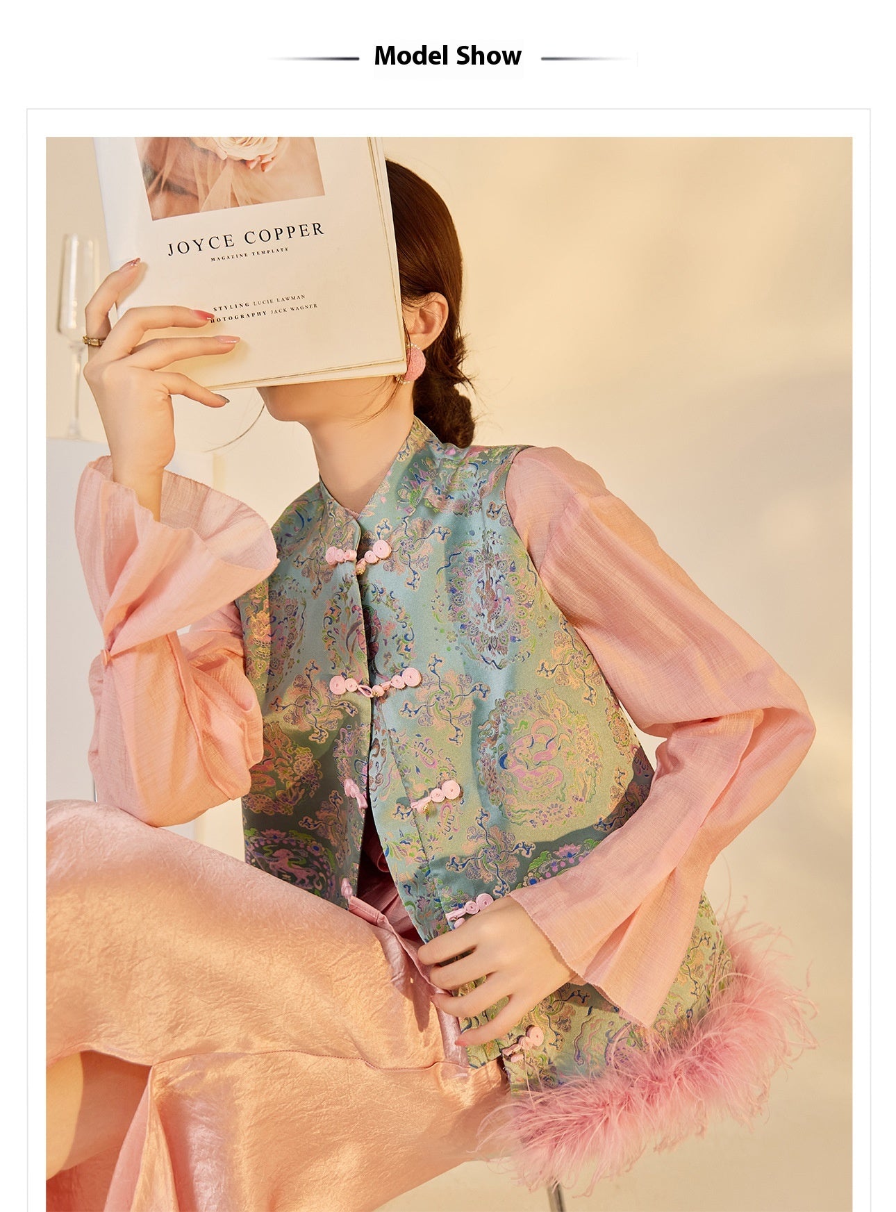 Ostrich Feather Detachable Vest – Elegant New Chinese Style Top