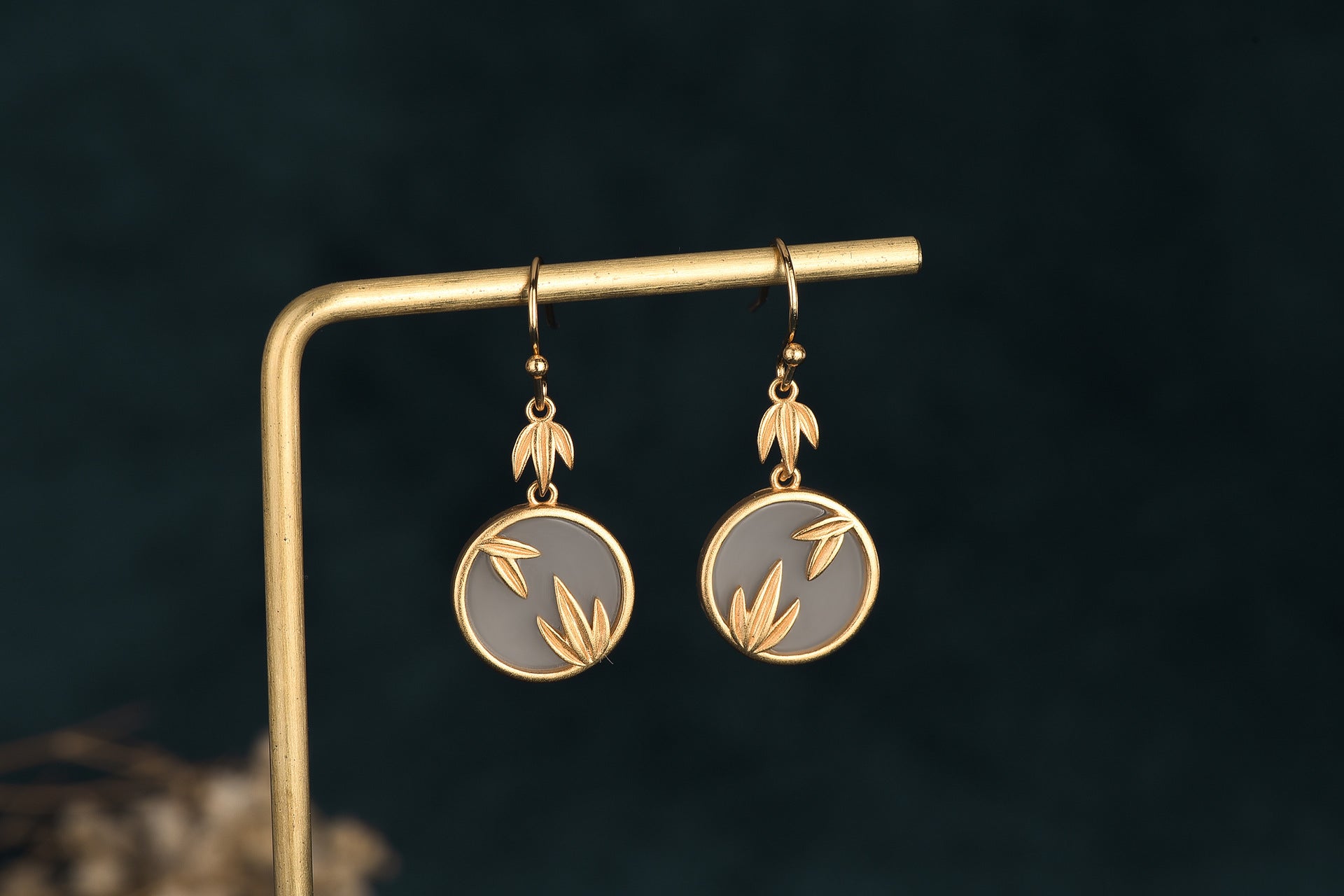 Classical Style Jade Earrings — Copper Plated 24K Gold Bamboo Leaf