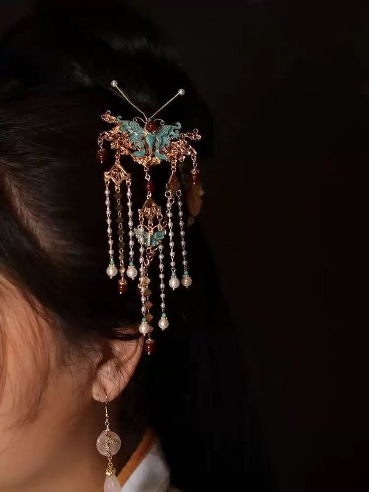 Hanfu Side Hair Clip Ming Song Style Qipao Accessory Enamel Lily Bell Hairpin
