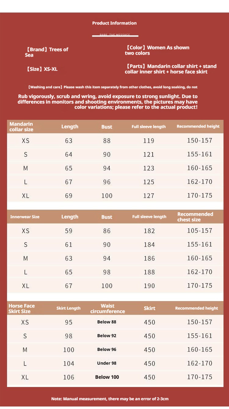 Trees of Sea Women Ming Hanfu Set: Fleece Lined Embroidered Collared Jacket & Horse Face Skirt New Year Outfit