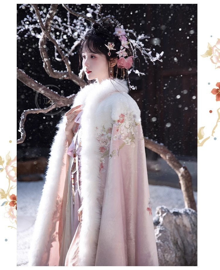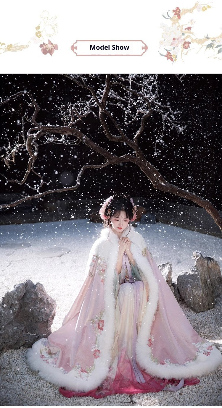 Women's Tang Dynasty Hanfu Winter Embroidered Shirt & Cloak Set