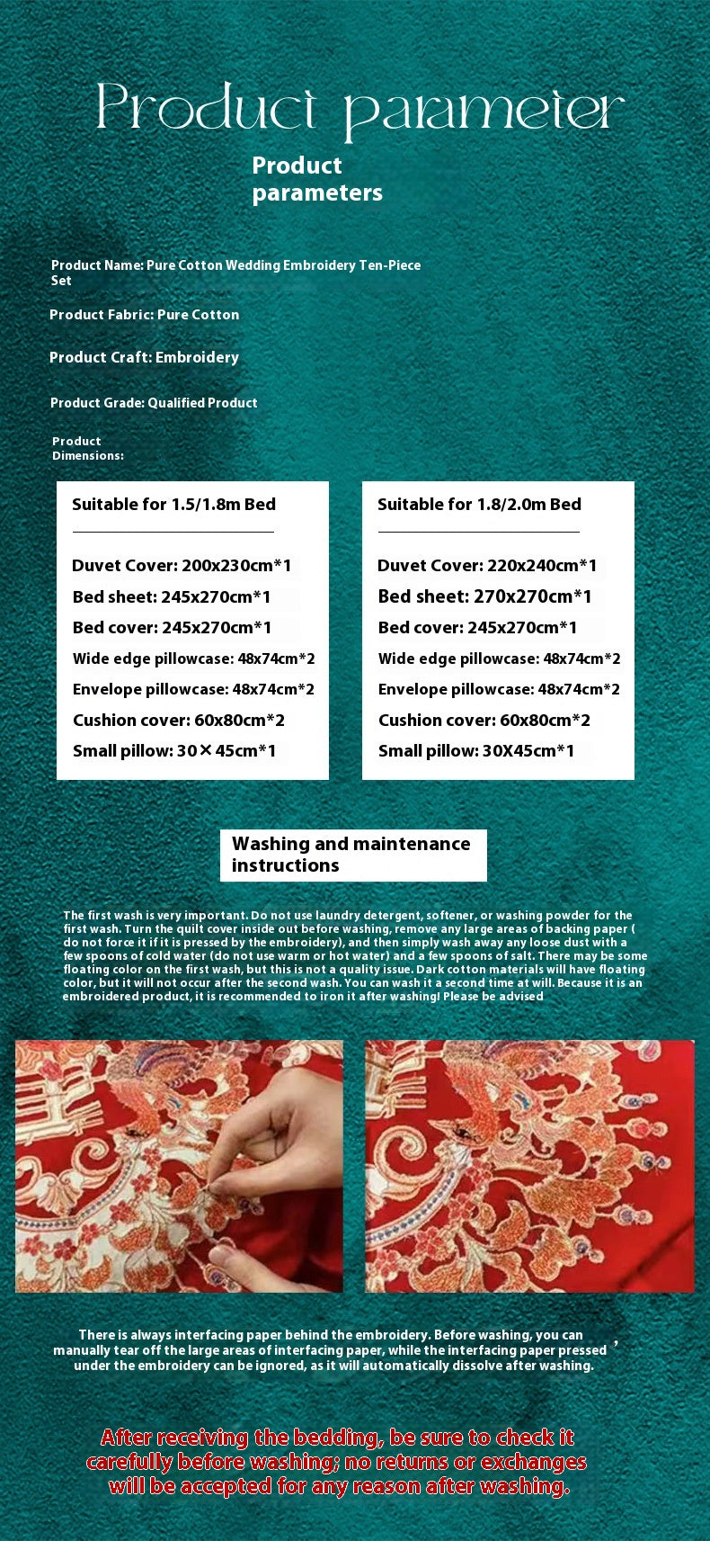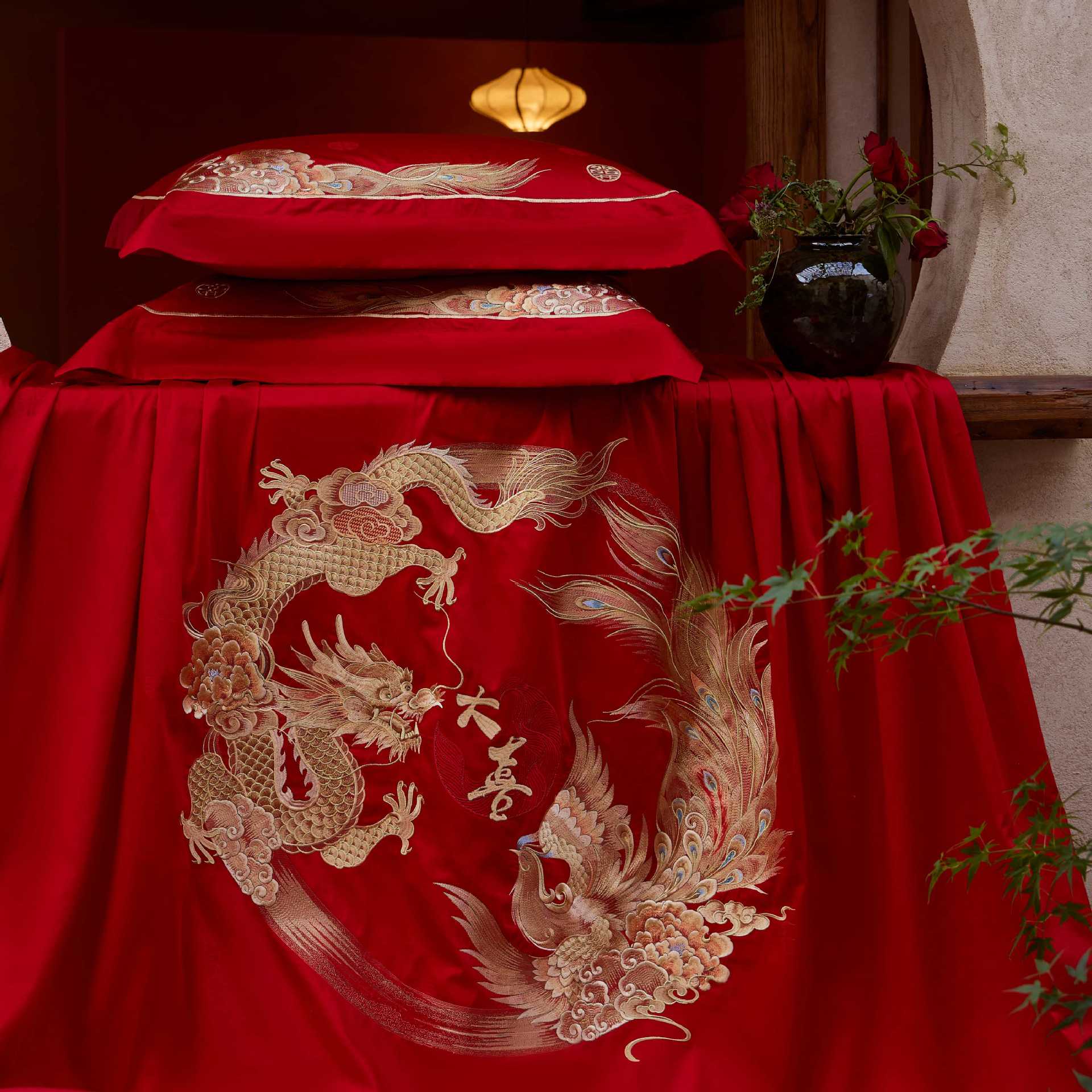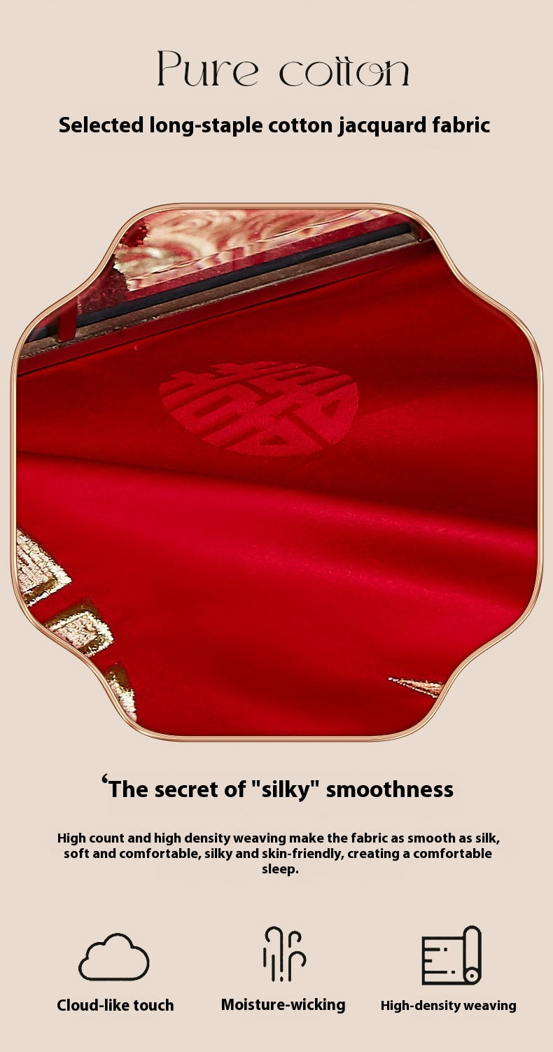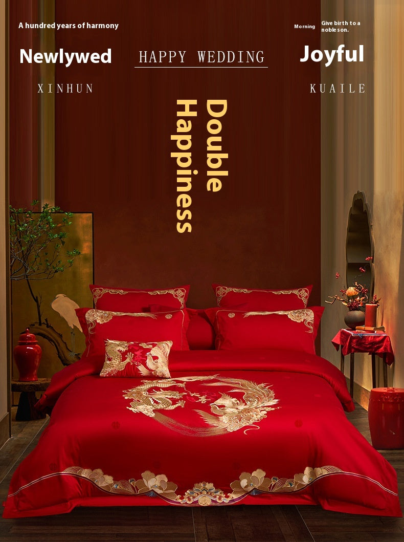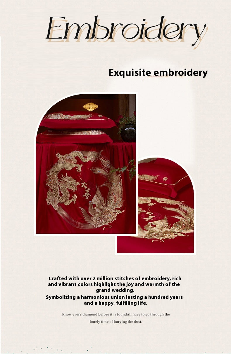 Luxury Cotton Wedding Bedding Set 4-Piece Embroidered Quilt Cover