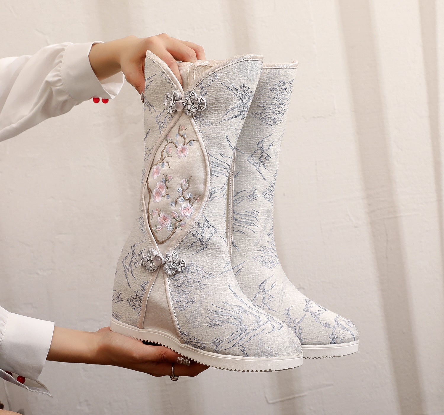 Women’s Hanfu Boots — Embroidered Ink Painting Autumn Height-Increasing Shoes