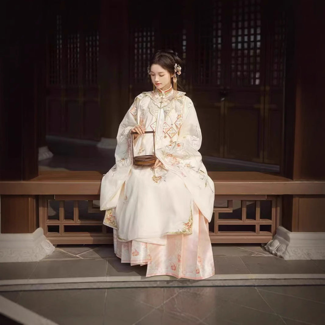 Women Ming Dynasty Hanfu Set Heavy Embroidery Cloud Shoulder Stand Collar Horse Face Skirt
