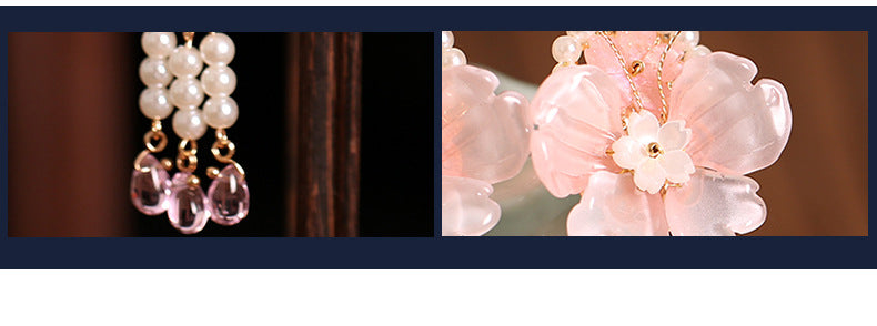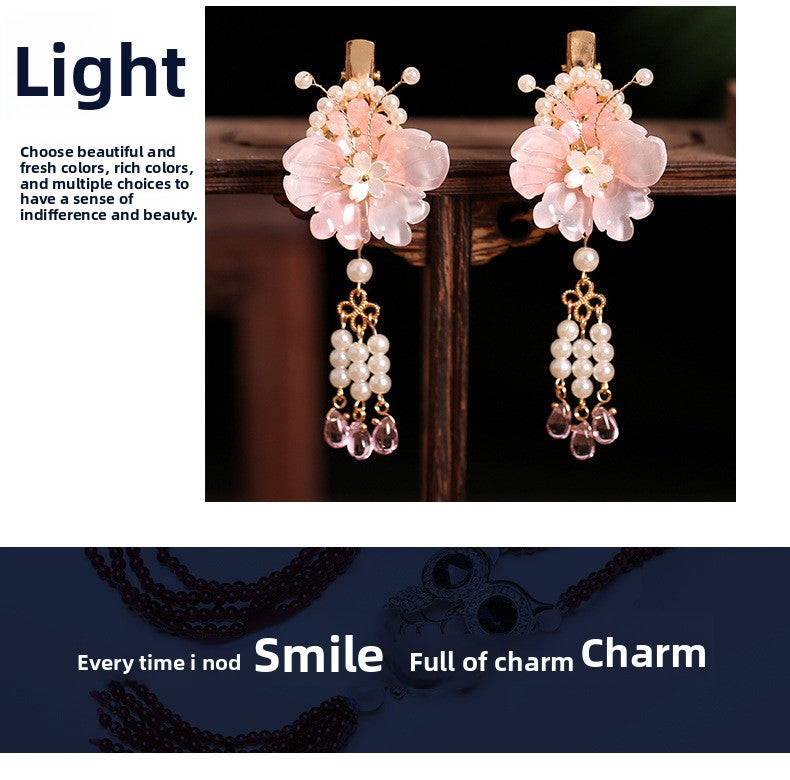 Kids Hair Clips Pink Hanfu Headwear Fairy Style Chinese Vintage Double Clip