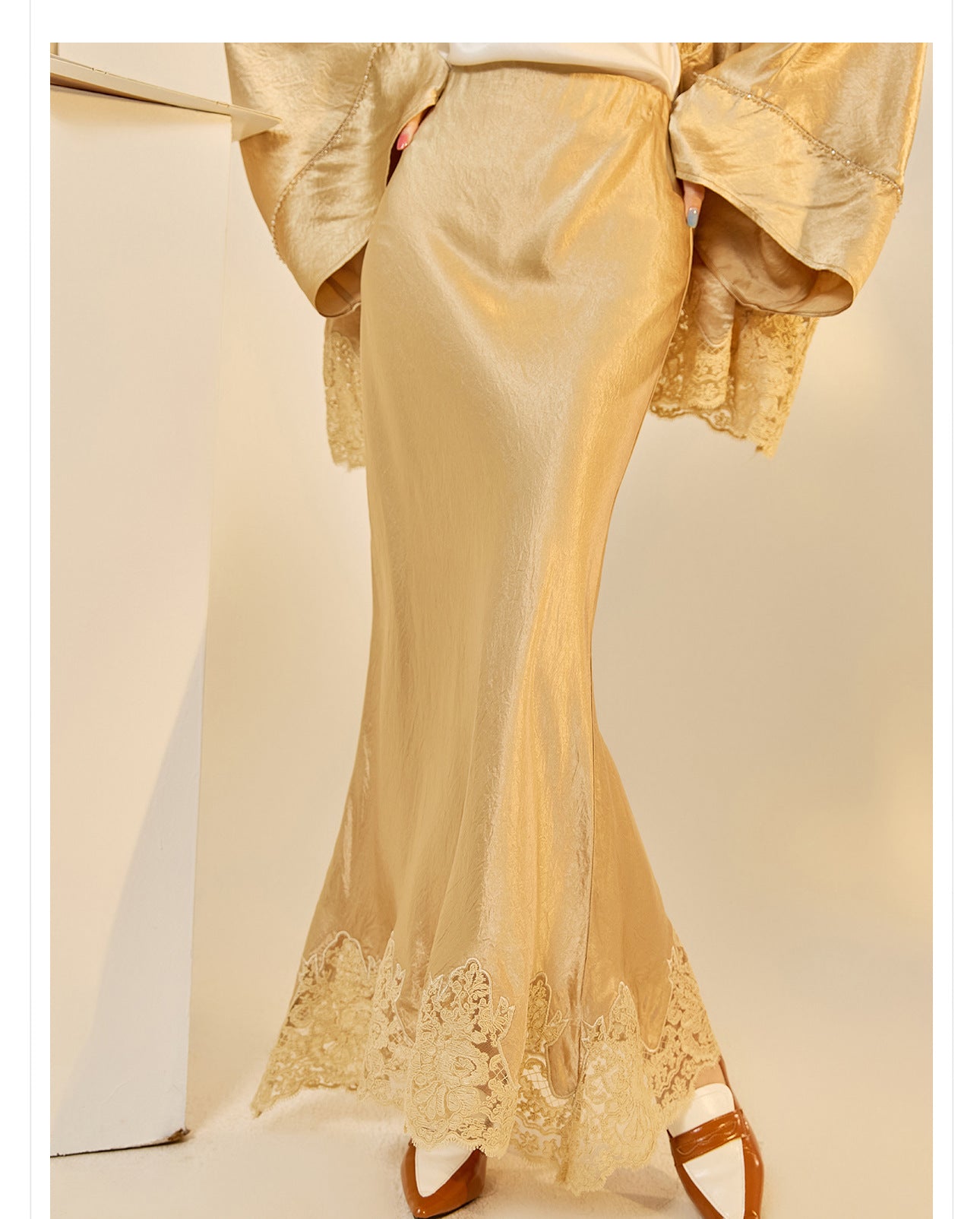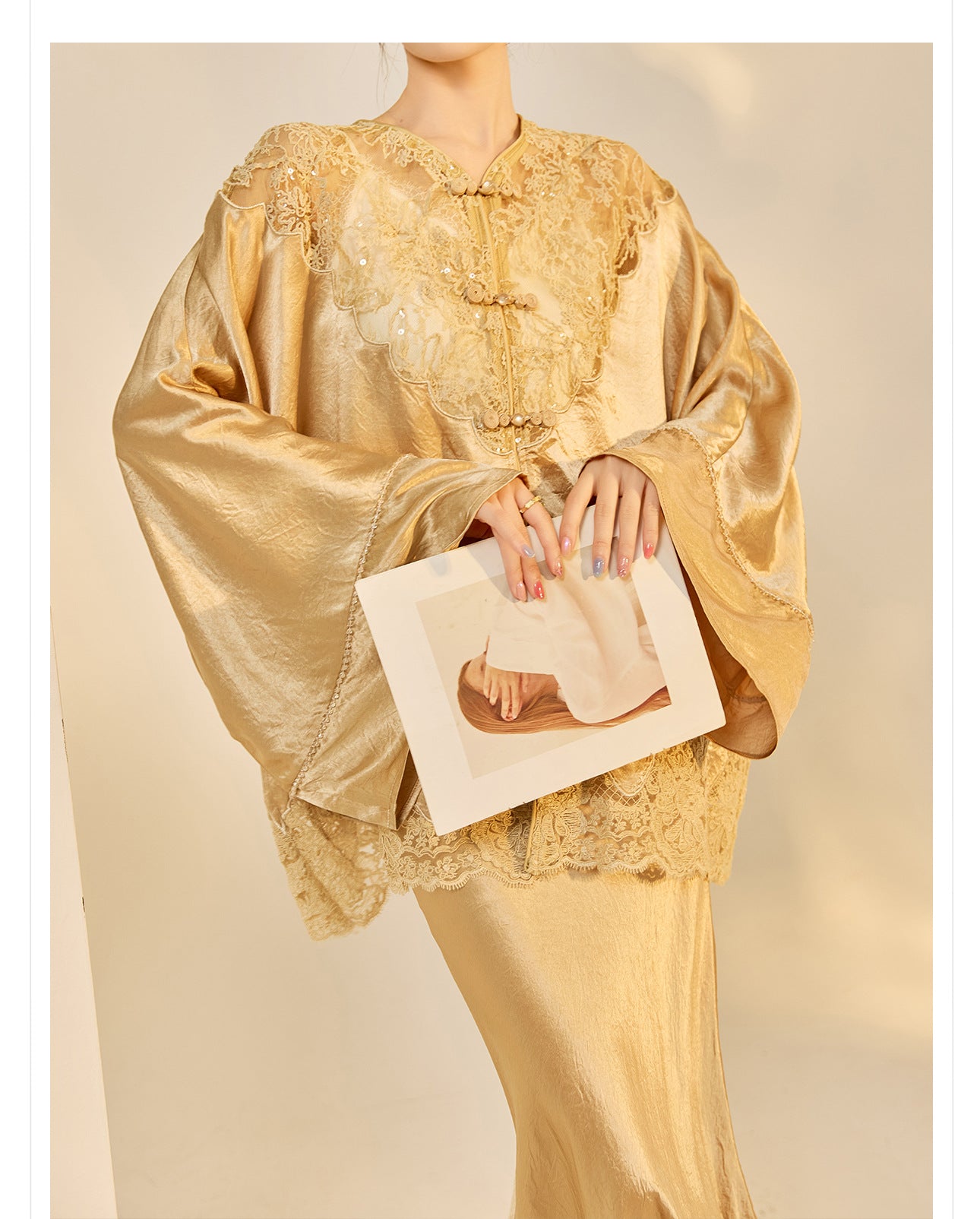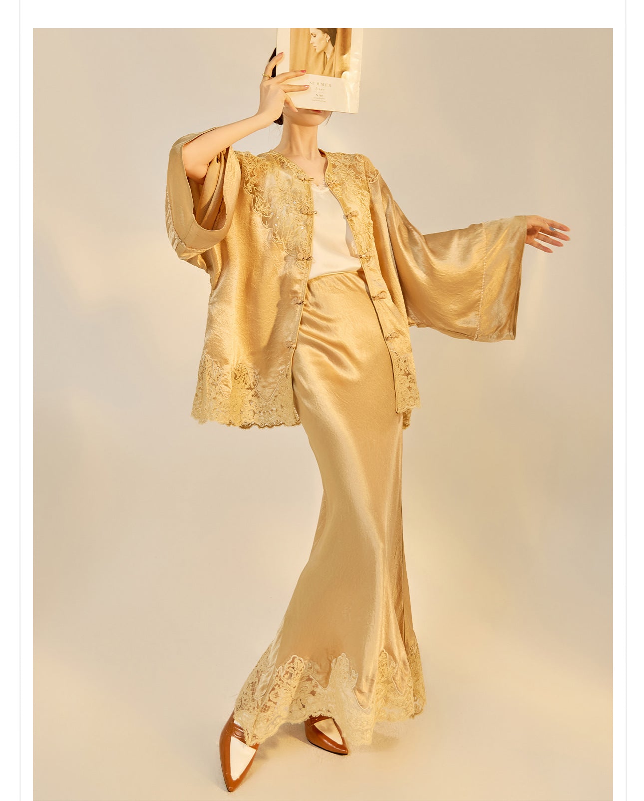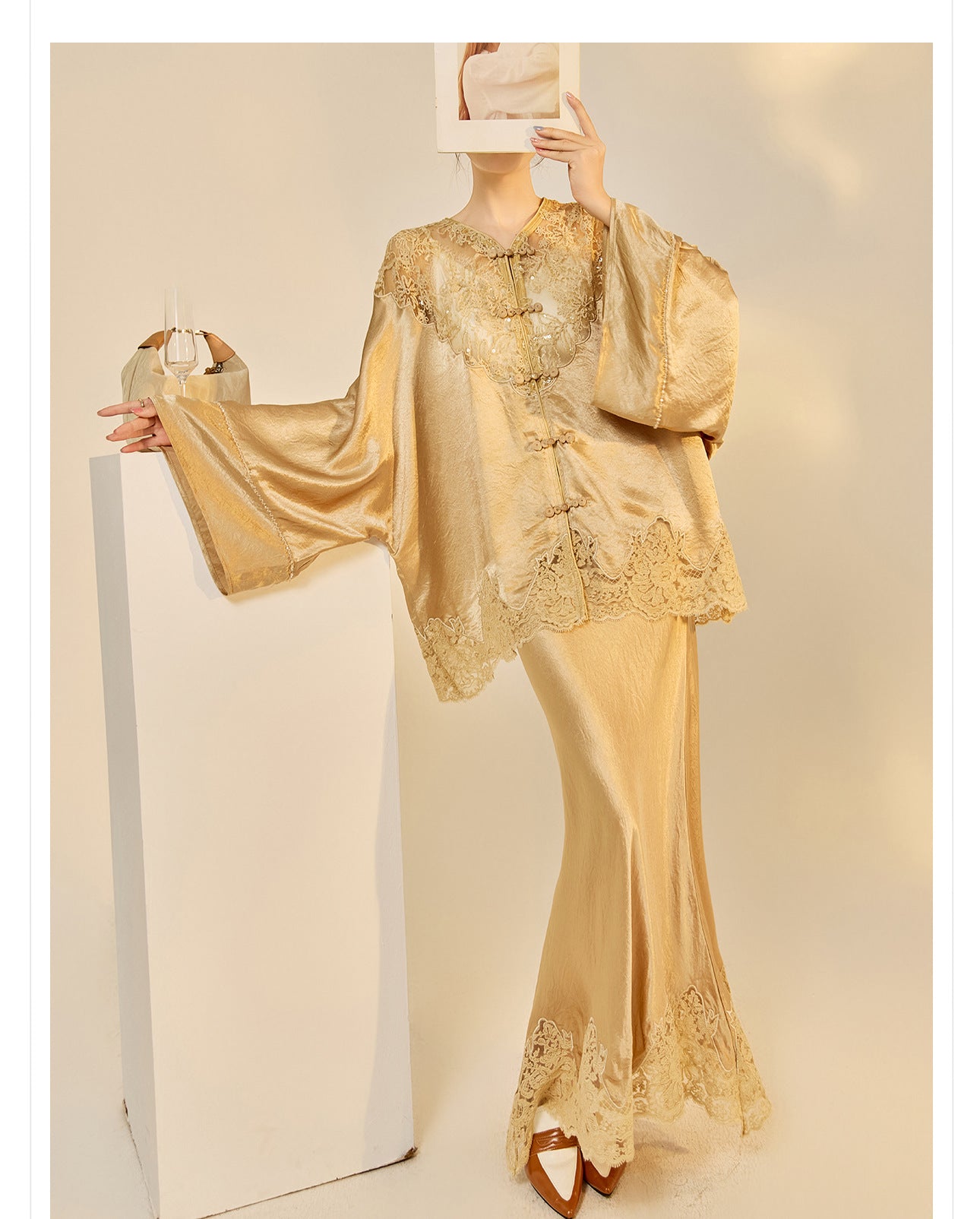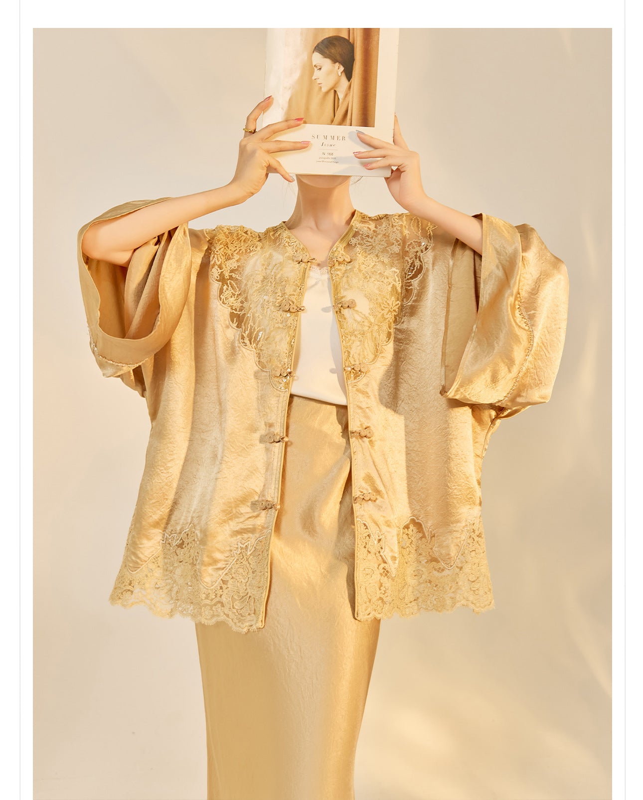 New Chinese Style Embroidered Jacket Skirt Set | Heavy Bead Lace Patchwork