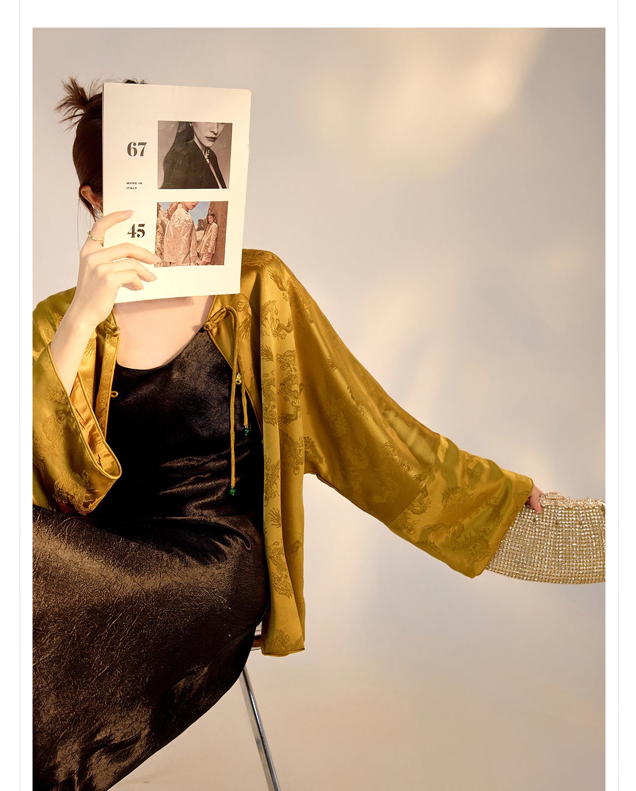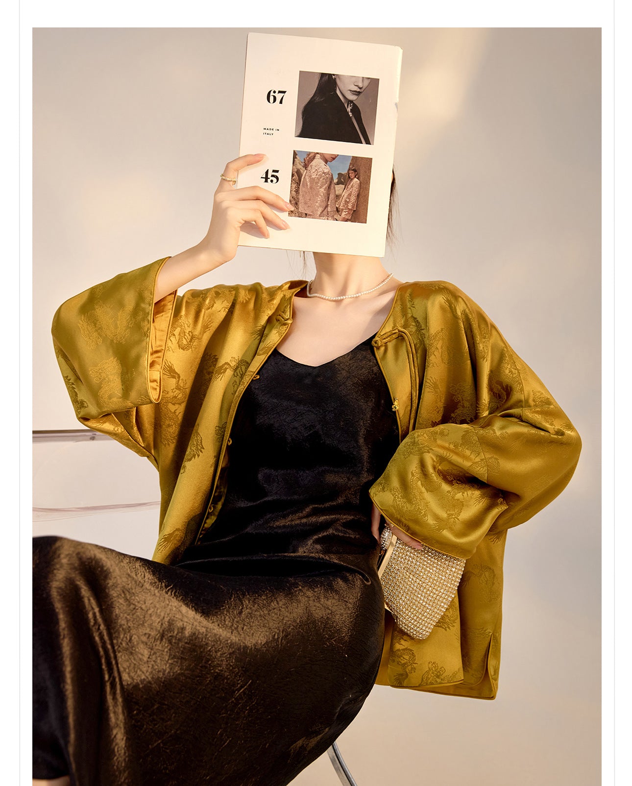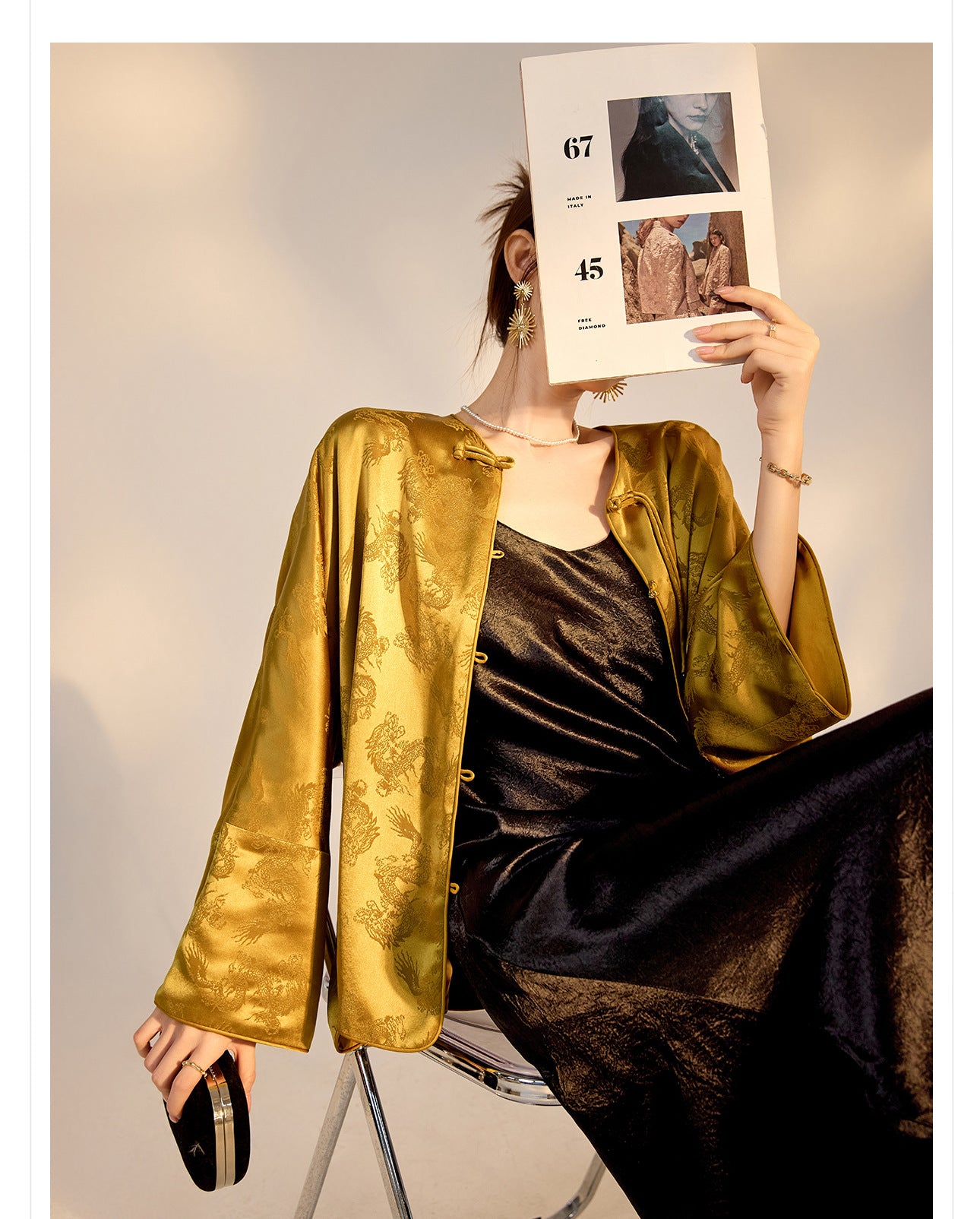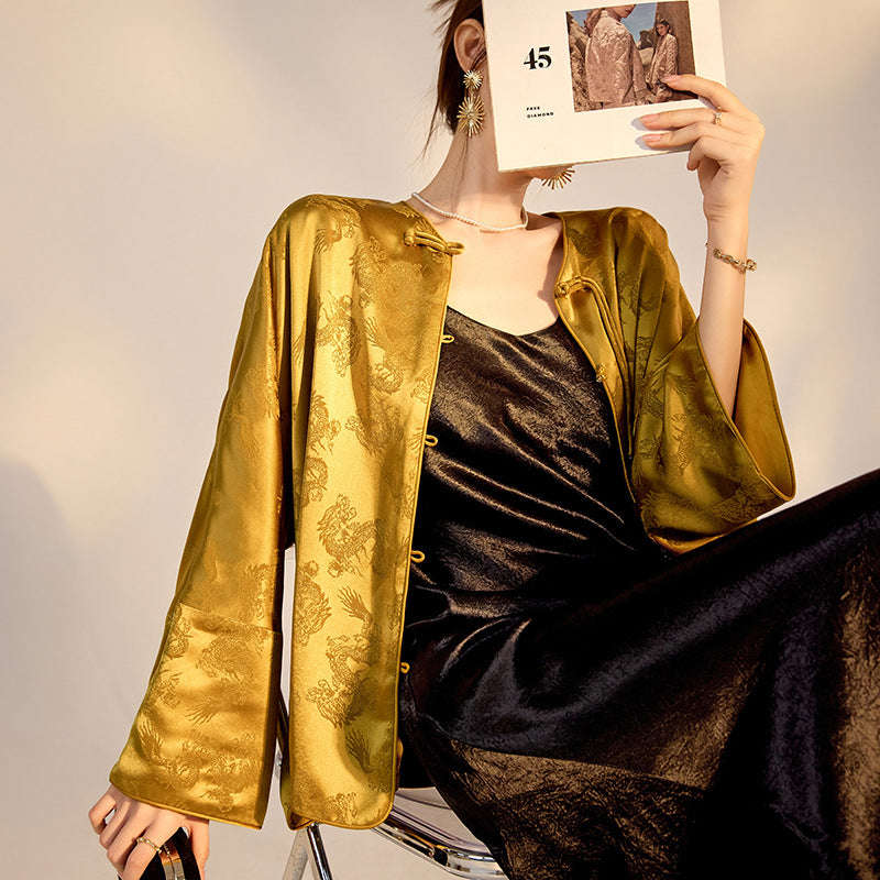 New Chinese Old Money Style Dragon Embroidered Acetate Luxury Coat
