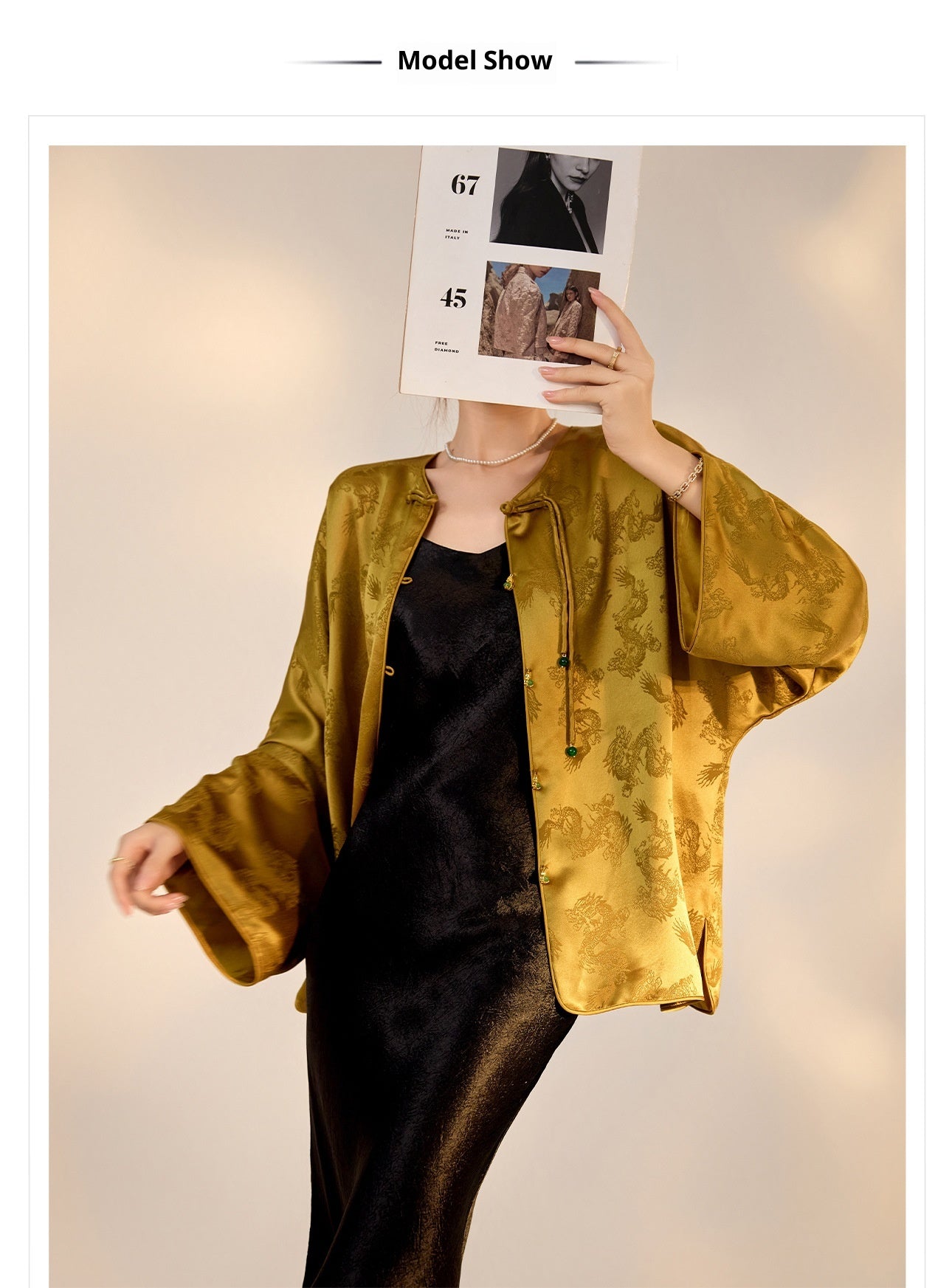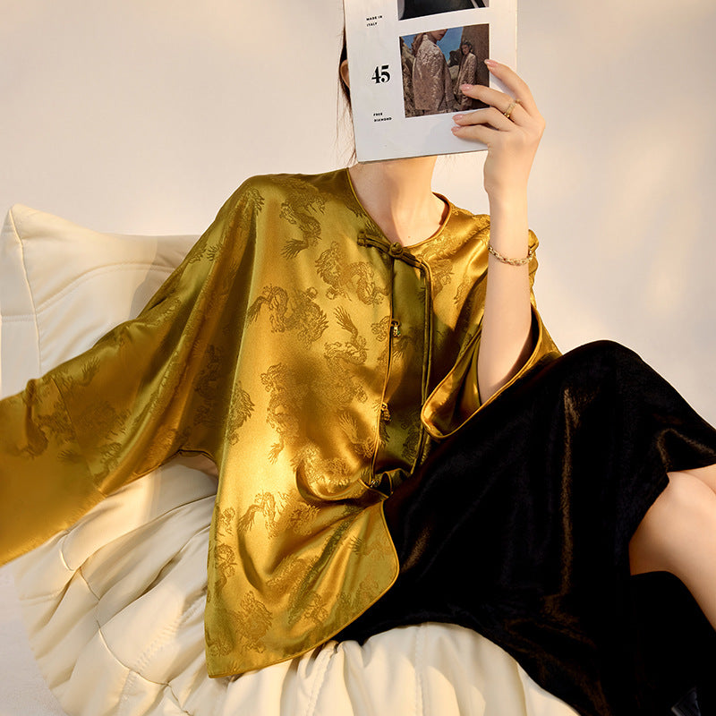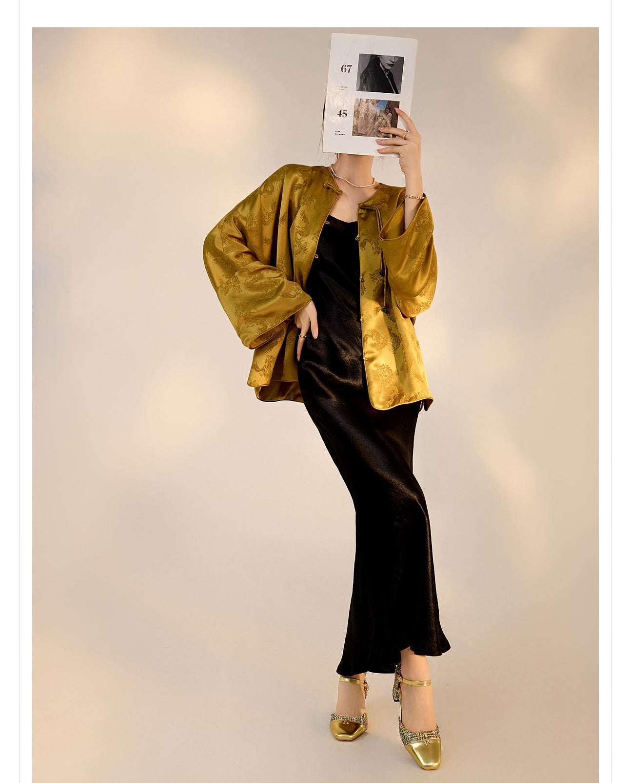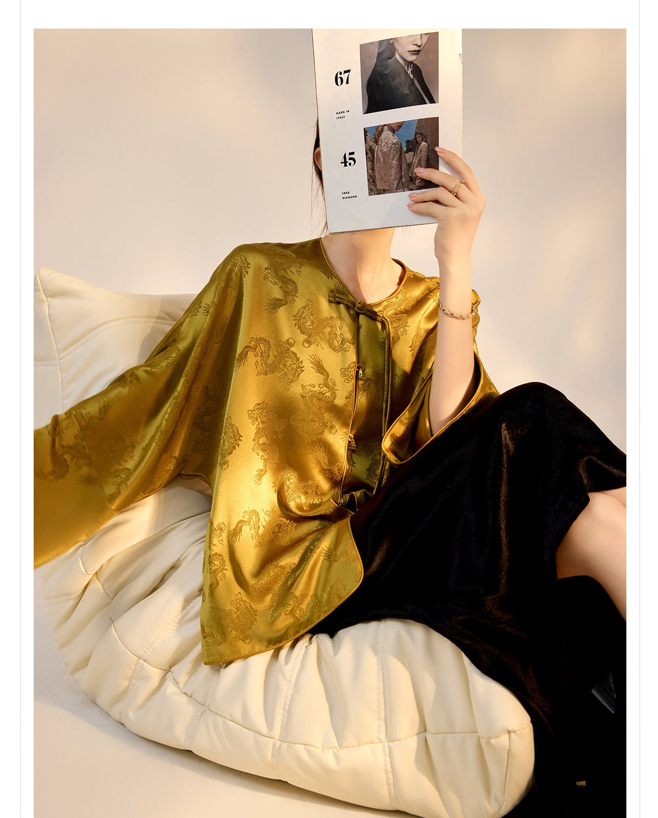 New Chinese Old Money Style Dragon Embroidered Acetate Luxury Coat