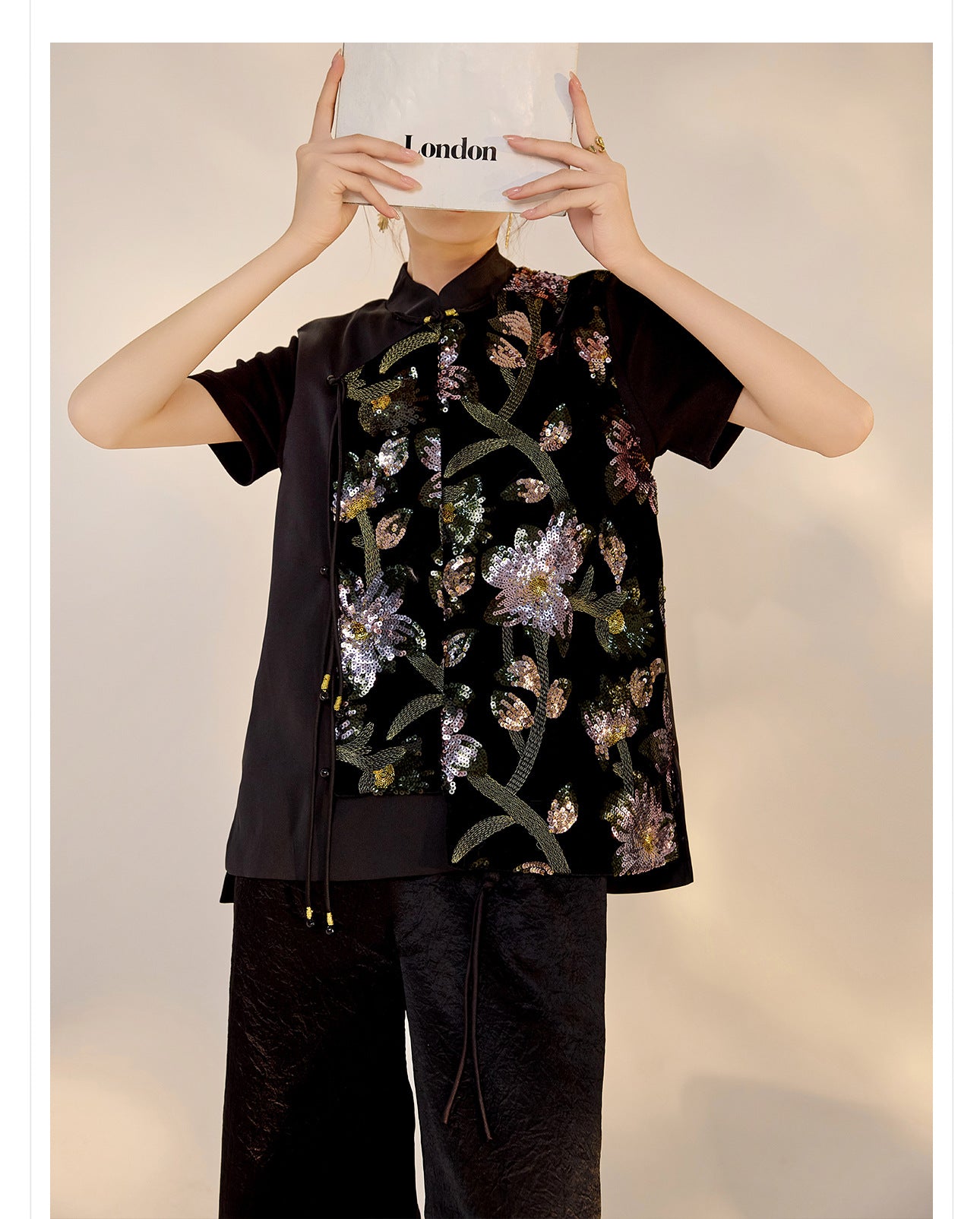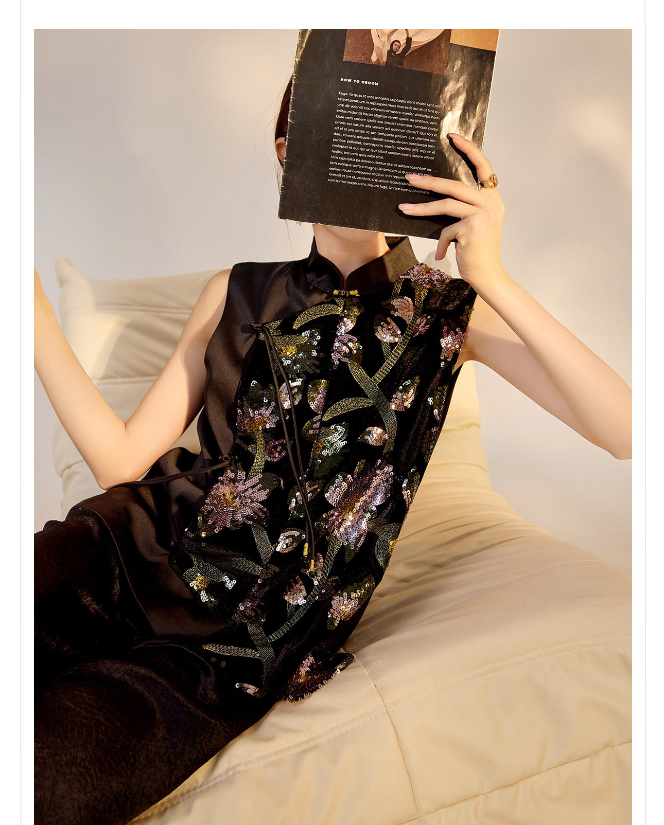 Summer Sequin Asymmetrical Vest Top High-End National Style
