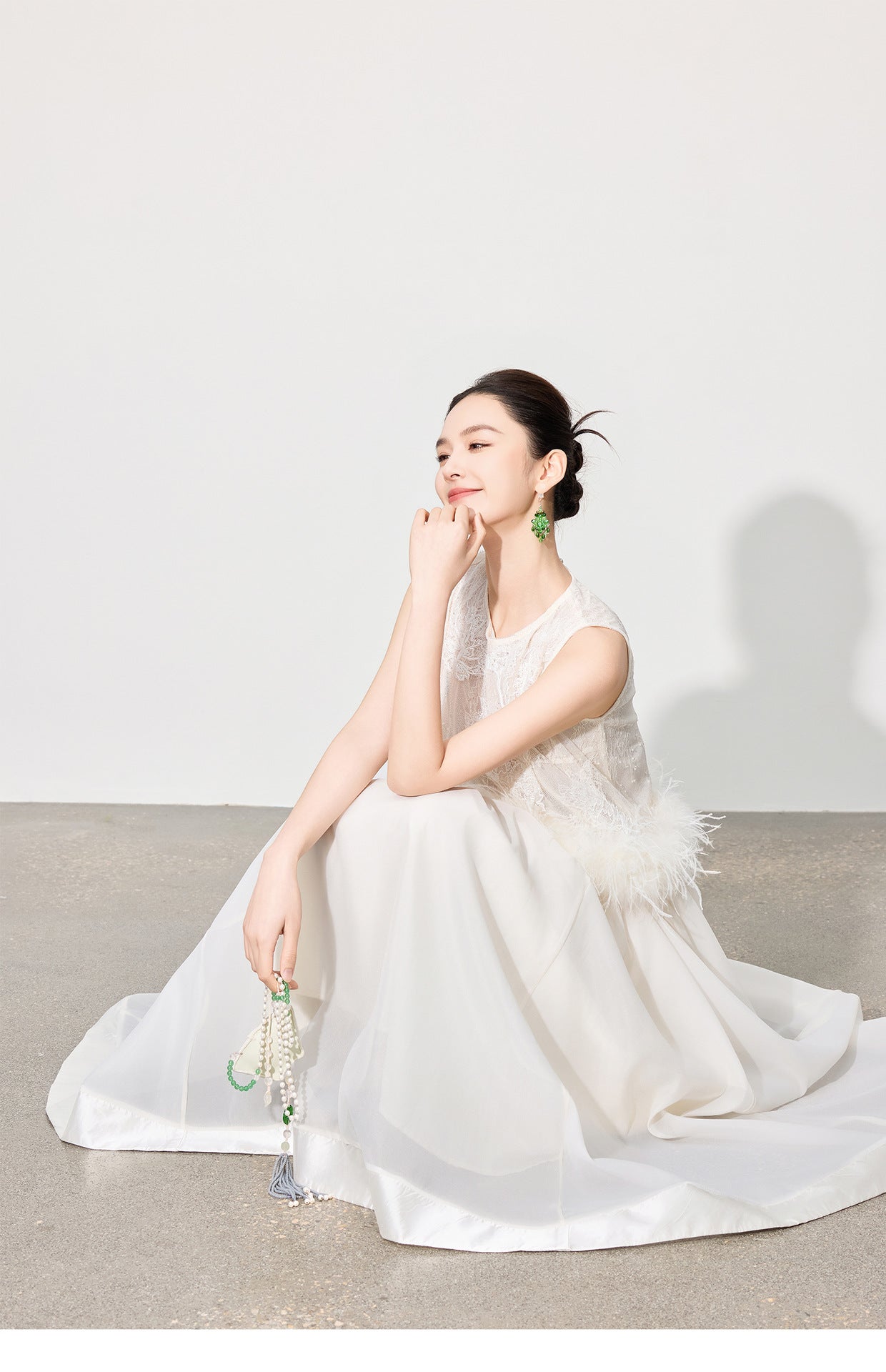 Double-Layer Mesh Patchwork Long Skirt with Elastic Waist