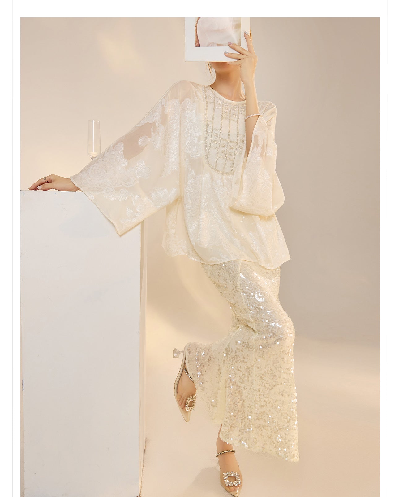 New Chinese Style Beaded Embroidered High-End Blouse for Women