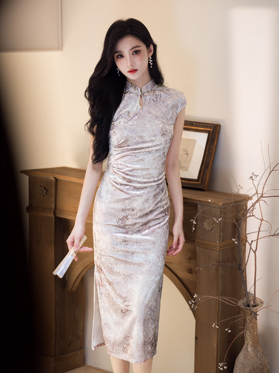 Improved Chinese Style Qipao – Everyday Wear Pink Velvet Dress