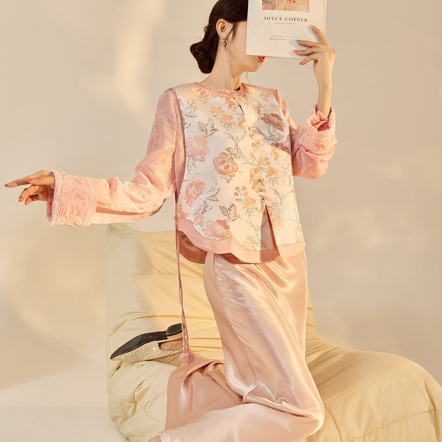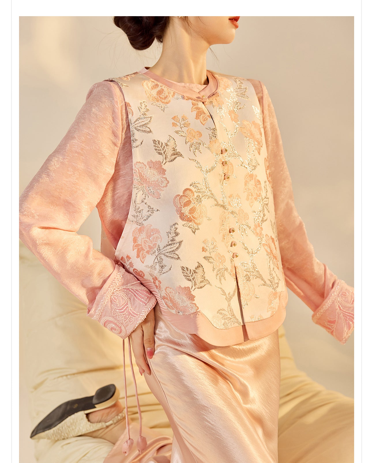 Elegant Jacquard Sleeveless Vest & Skirt Set for Autumn