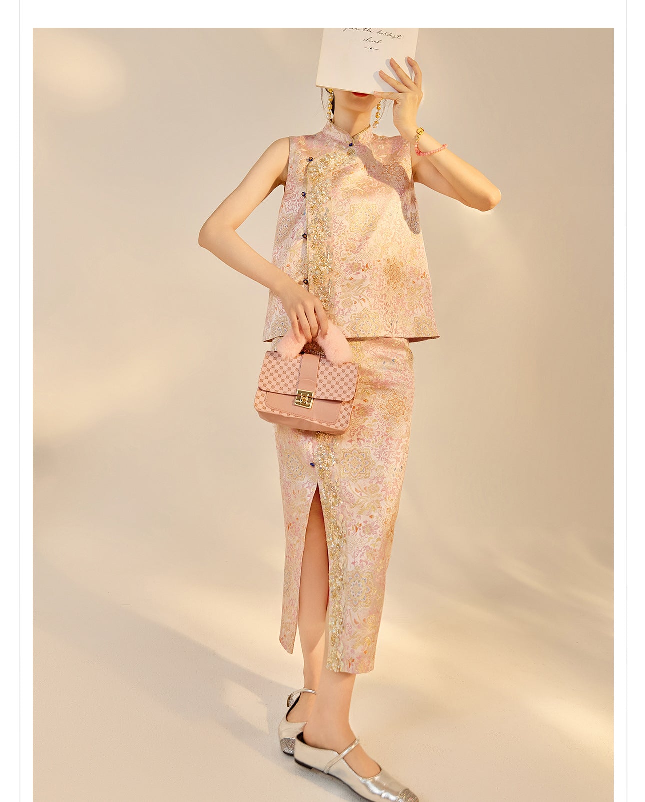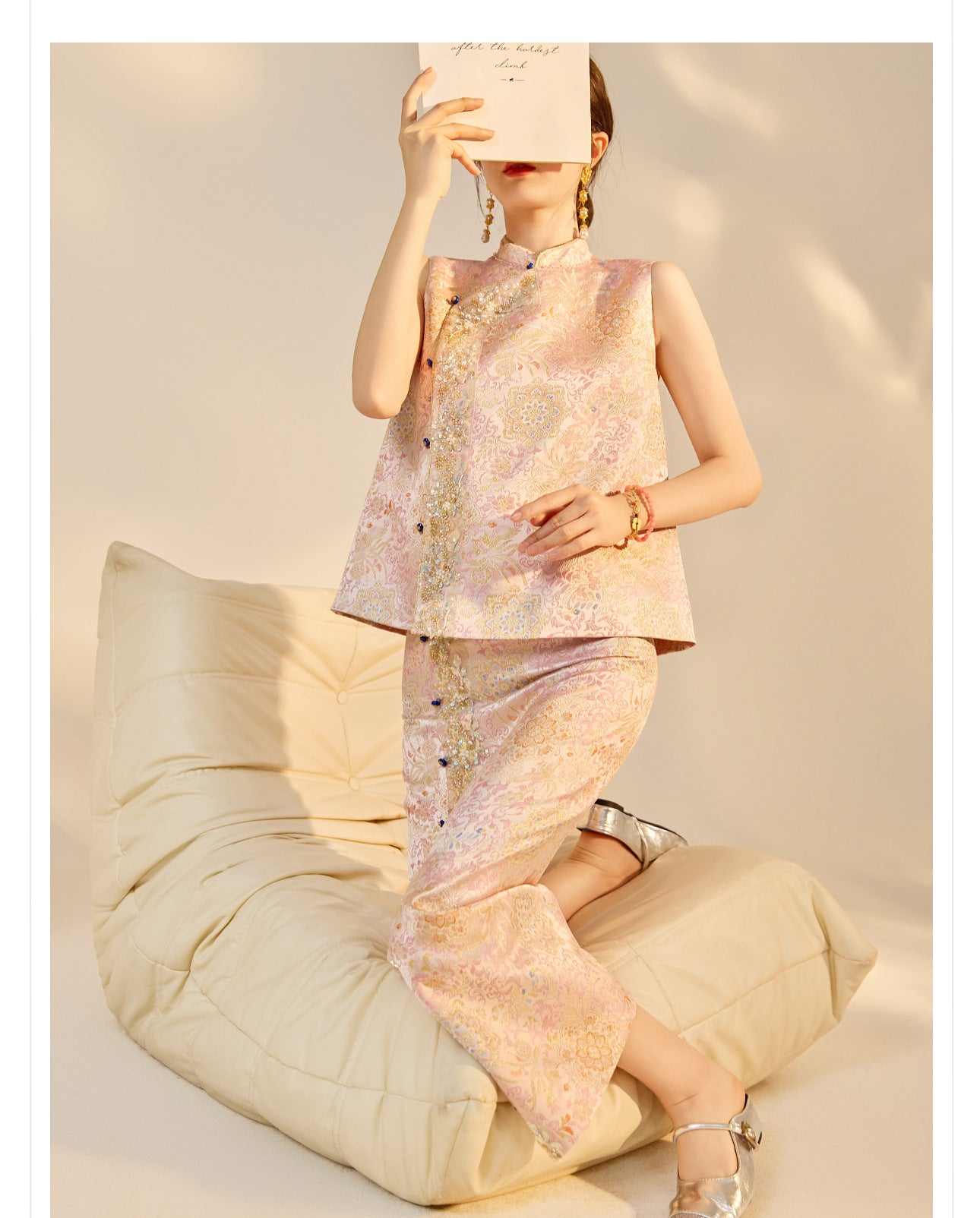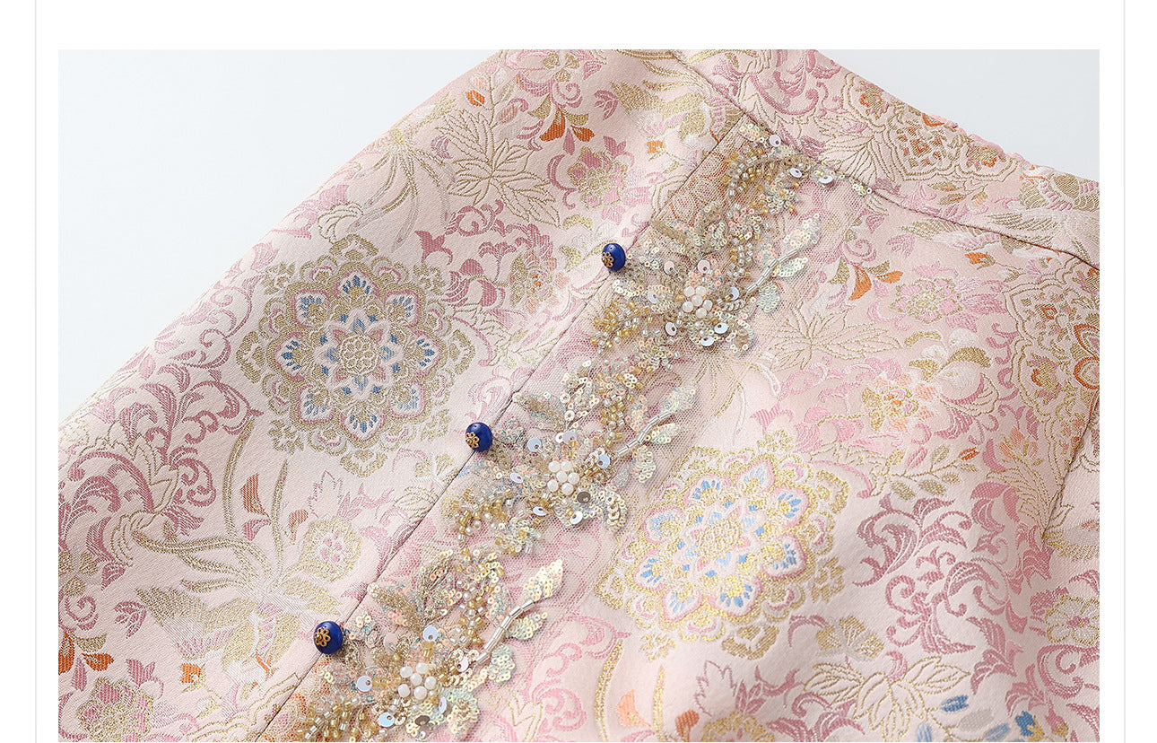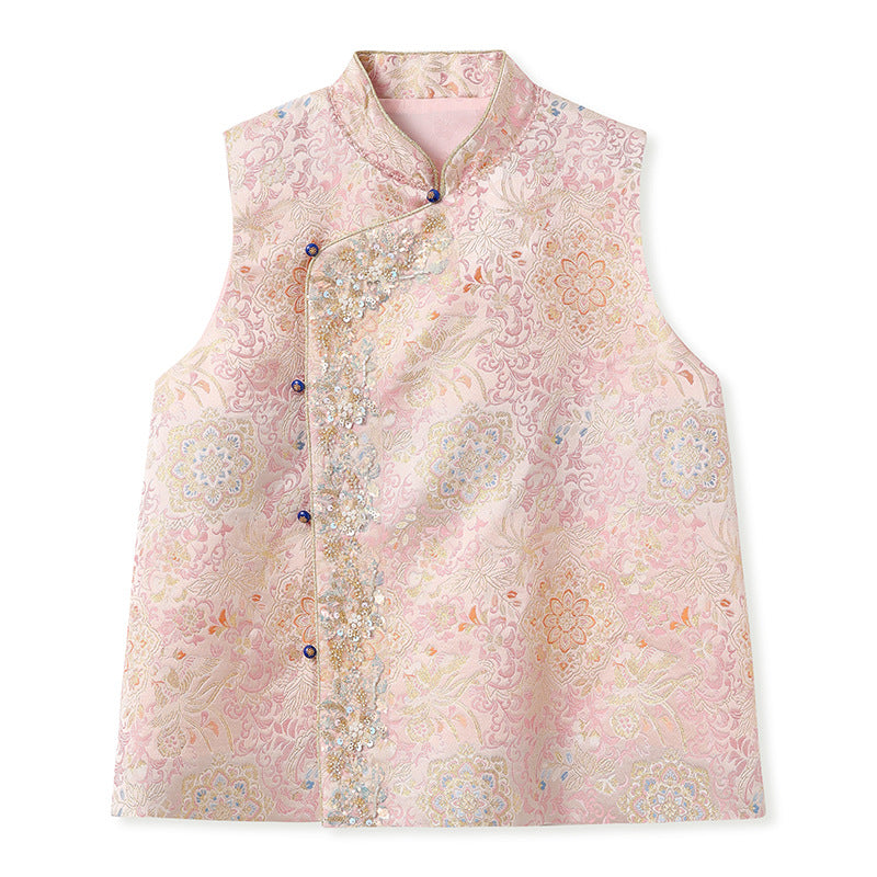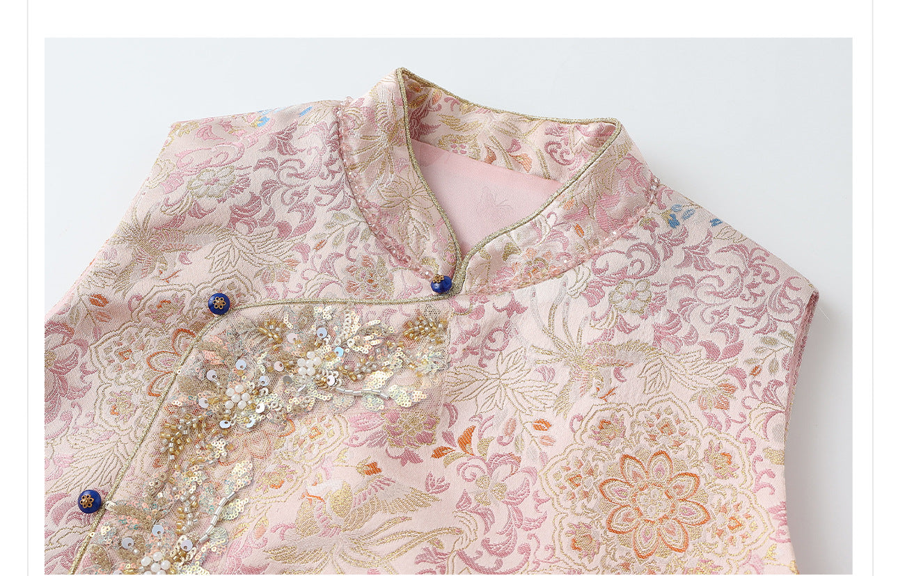 Elegant Beaded Asymmetrical Vest & High Waist Skirt Set