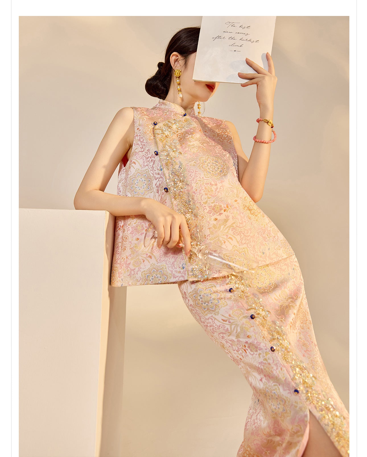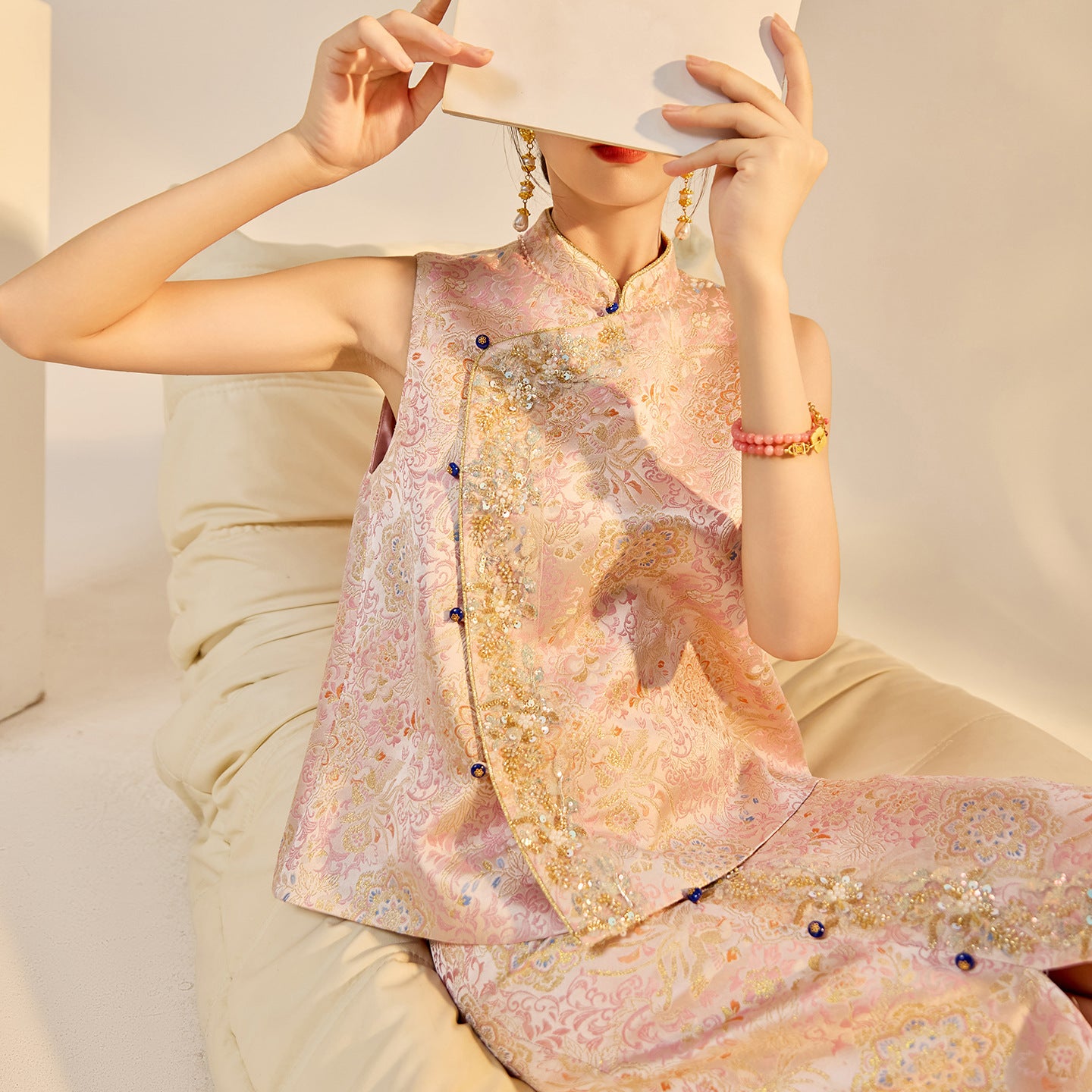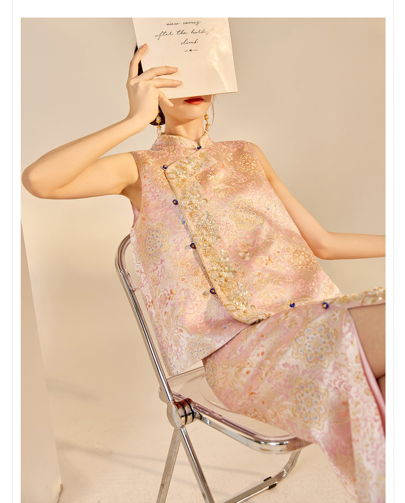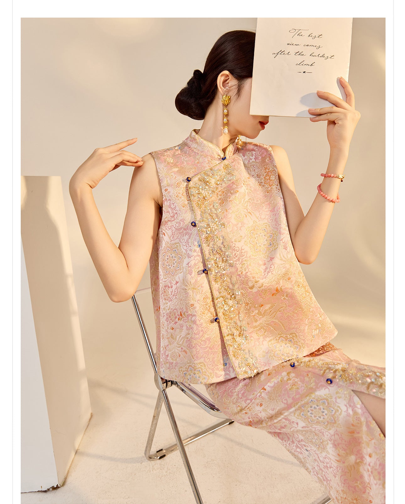 Elegant Beaded Asymmetrical Vest & High Waist Skirt Set