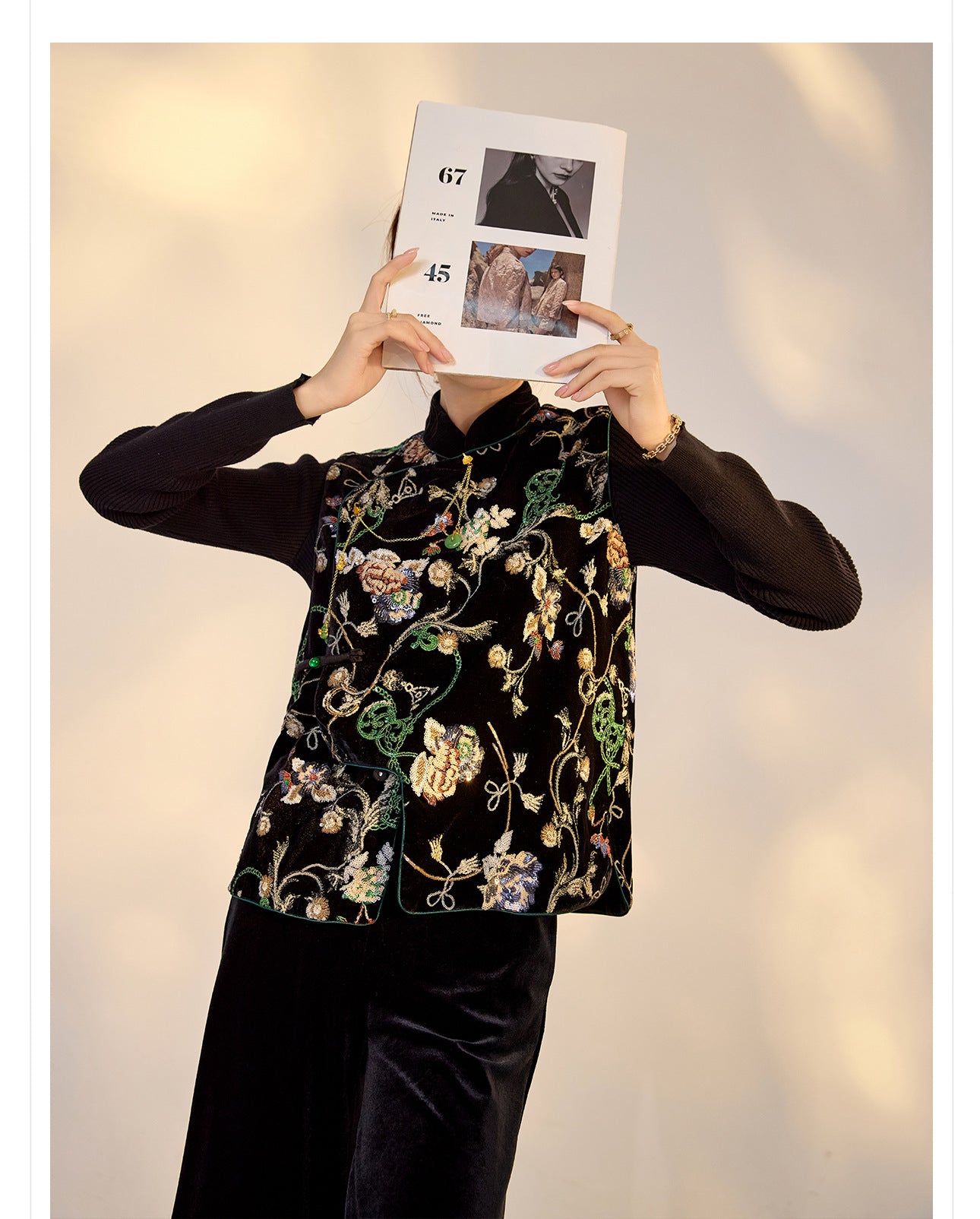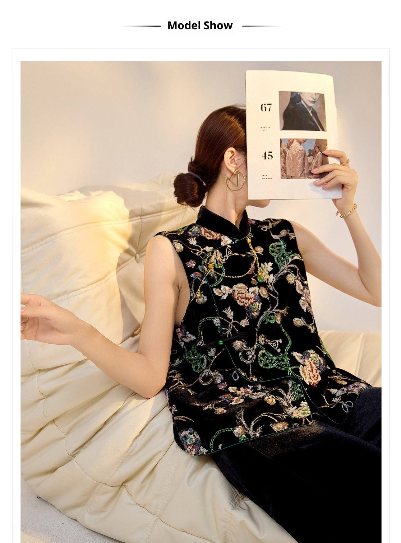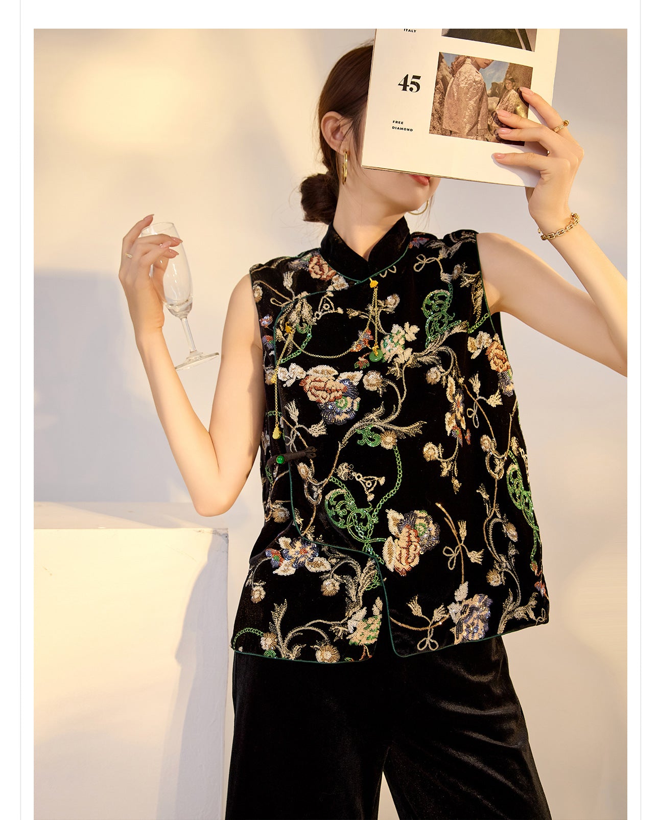 Elegant Velvet Floral Sequin Vest – High-End Women's Fashion