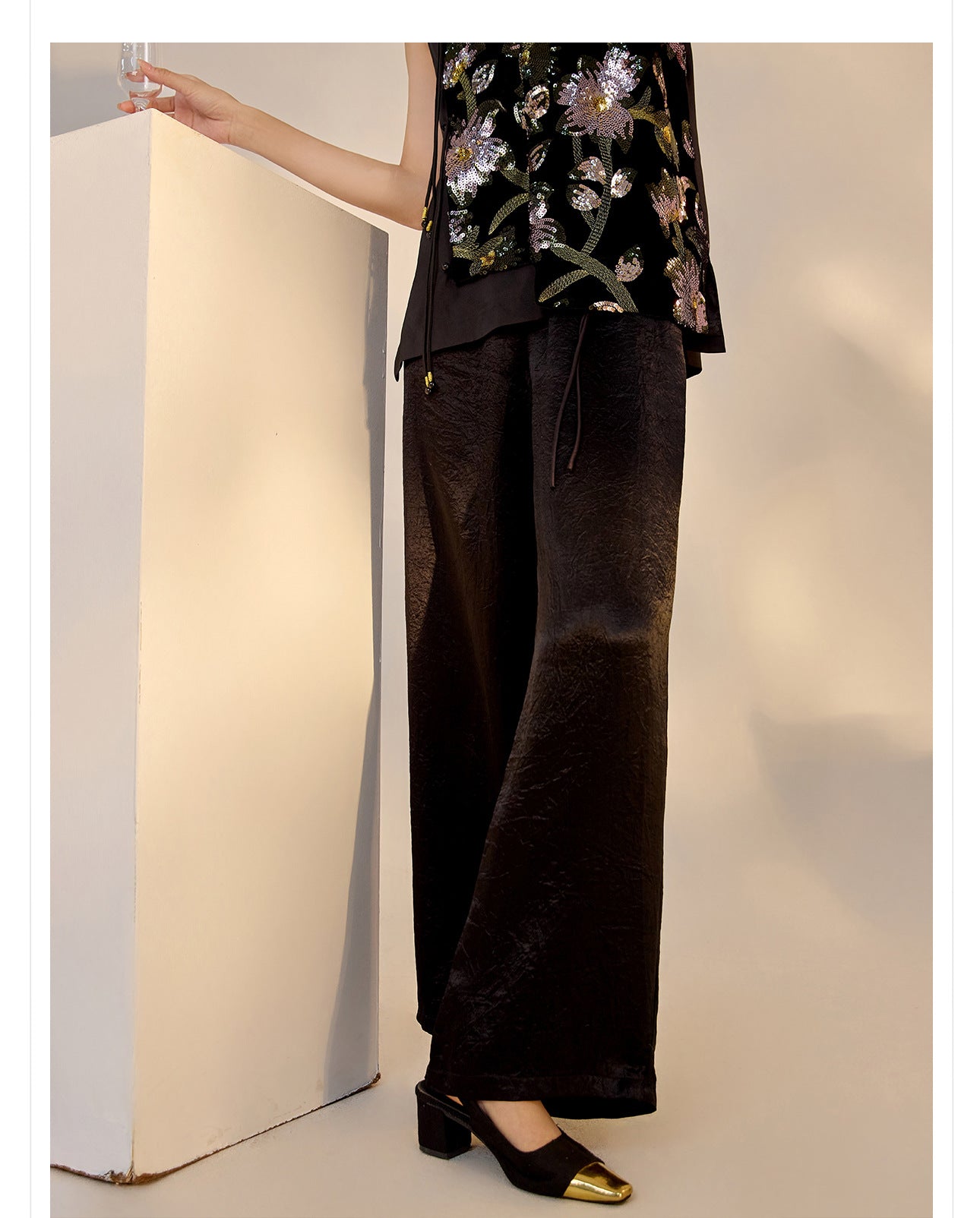 New Chinese Style High-Waist Wide-Leg Acetate Pants for Women
