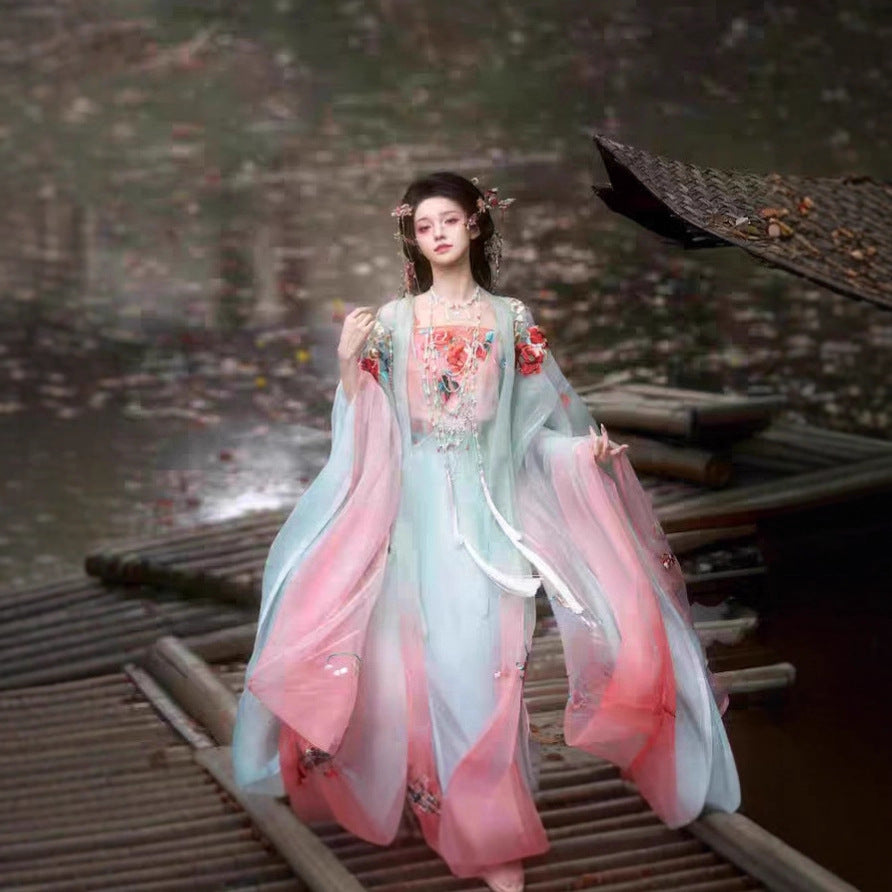 Original Hanfu Set Women's Heavy Embroidery Rose Manor Fairy Style