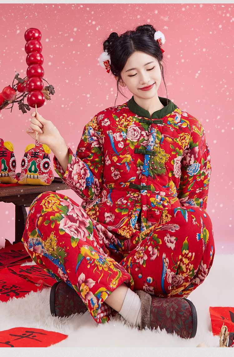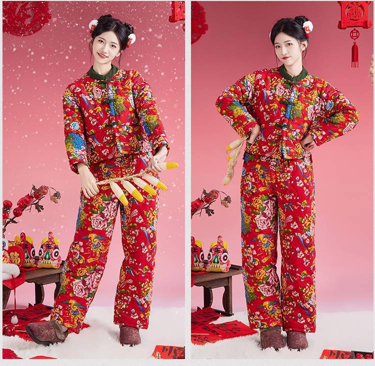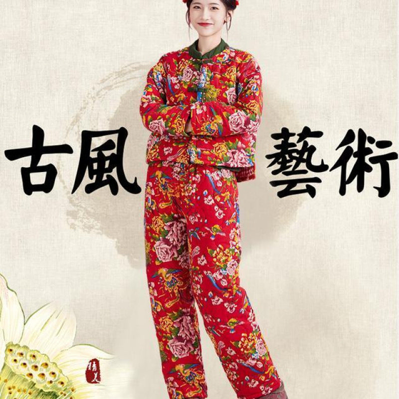 Northeast Floral Winter Jacket Women Thick Ethnic Cotton Coat Set