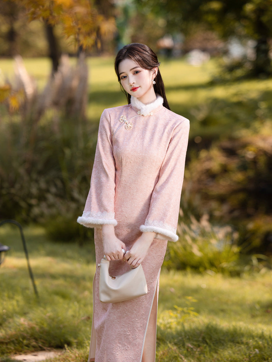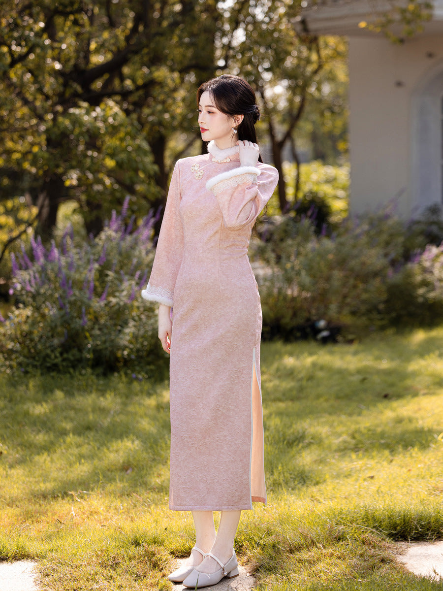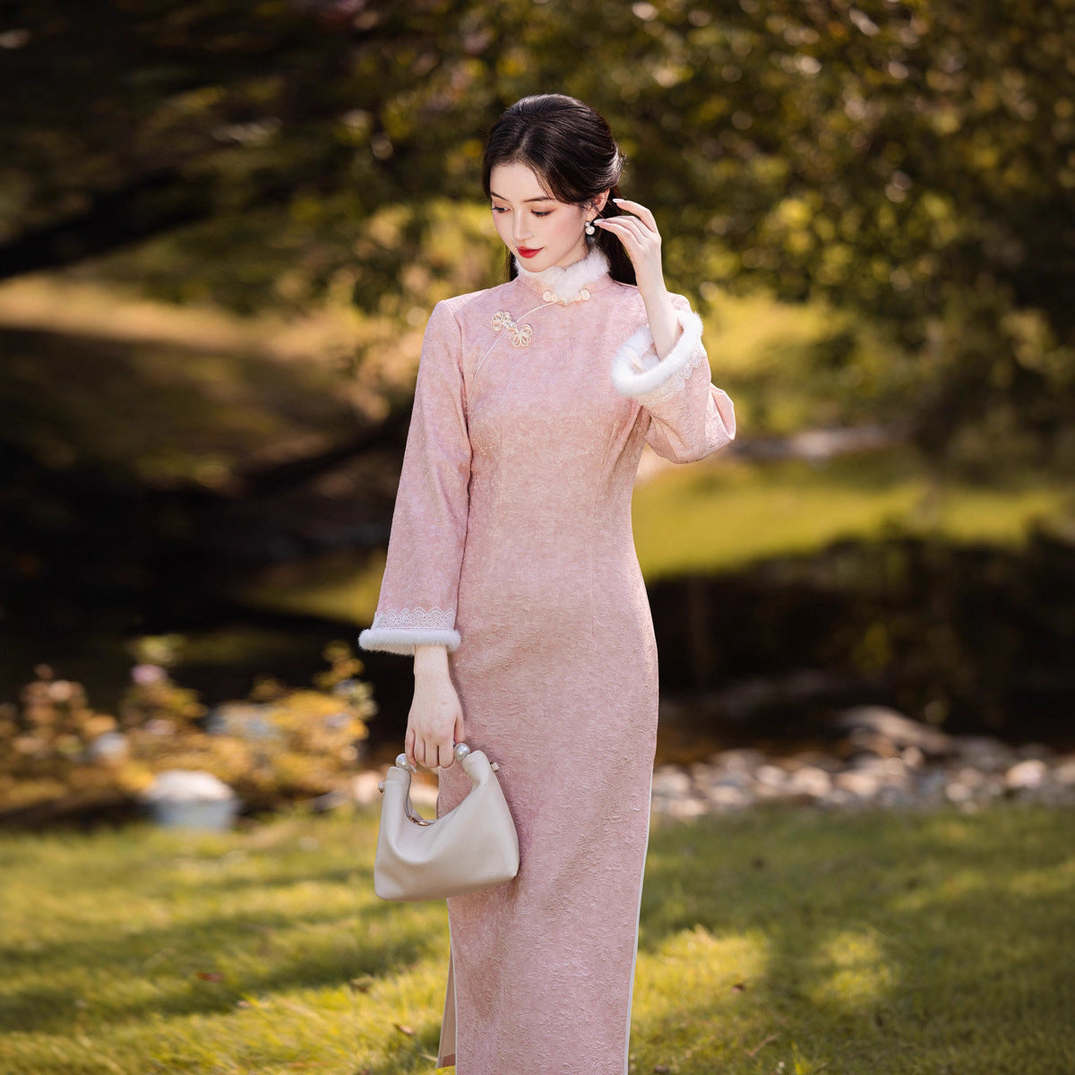 2025 New Pink Chinese Style Qipao | Warm Elegant Thickened Winter Dress