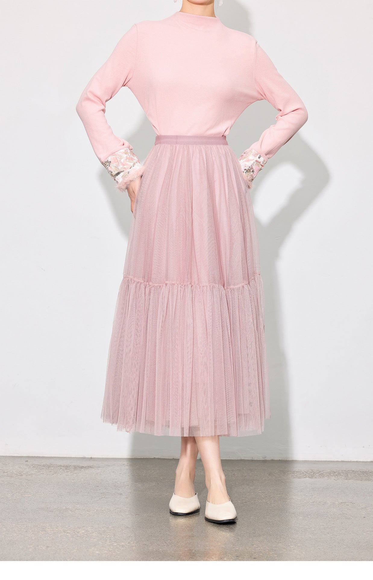 Luxury Pleated Mesh Skirt — Fairy-Inspired Layered Hem Midi