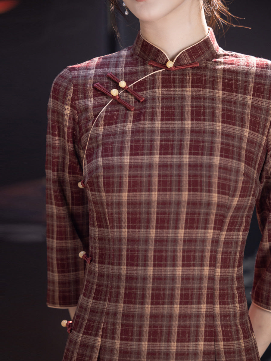 Improved Youth Style Qipao – Three-Quarter Sleeve Daily Dress