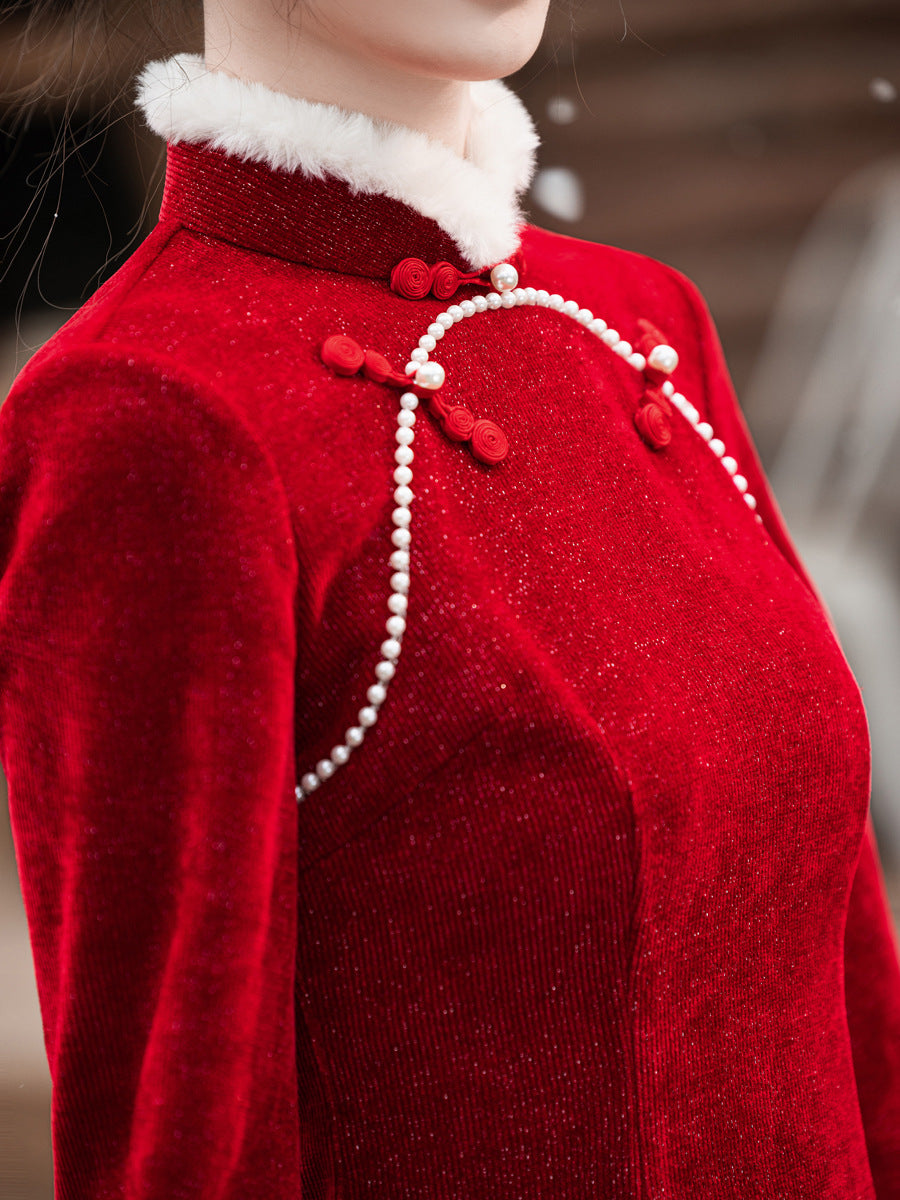 2025 New Improved Qipao – Warm Red High-End Autumn Winter Style