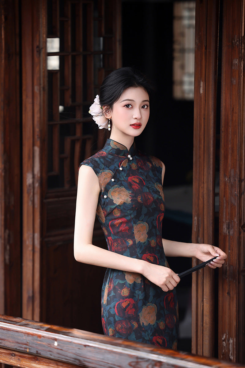 Retro Hong Kong Rose Cheongsam – Sleeveless Youth Dress