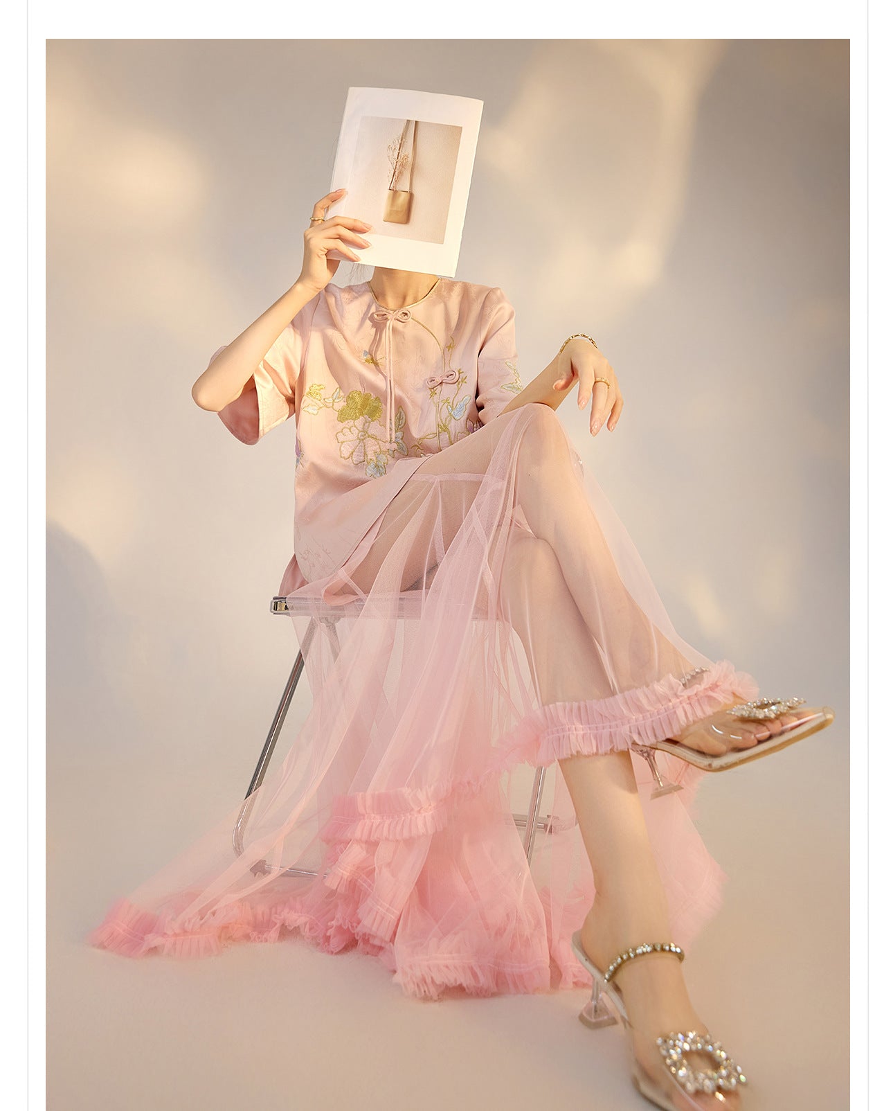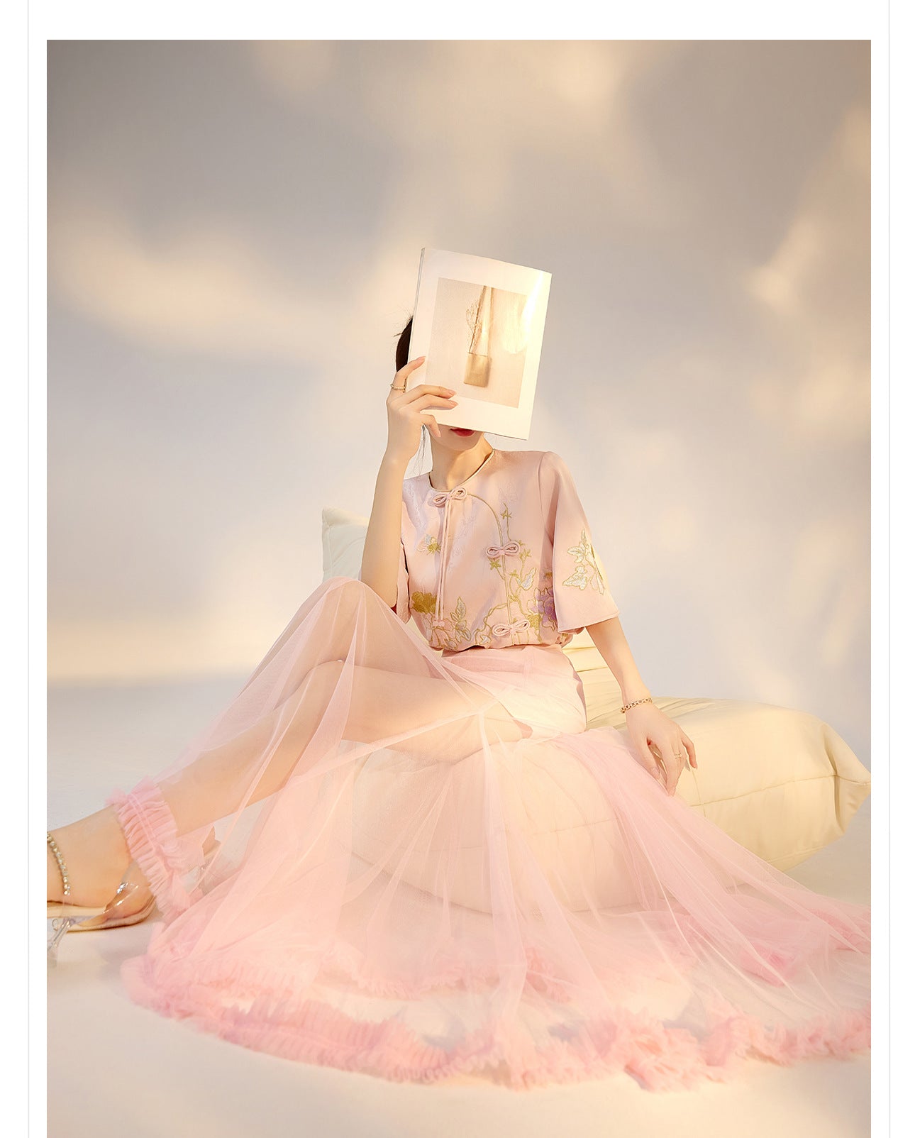 Summer New Chinese Style Embroidered Printed Top and Skirt Set