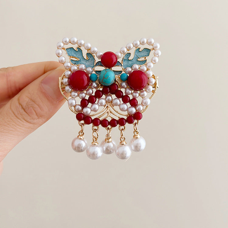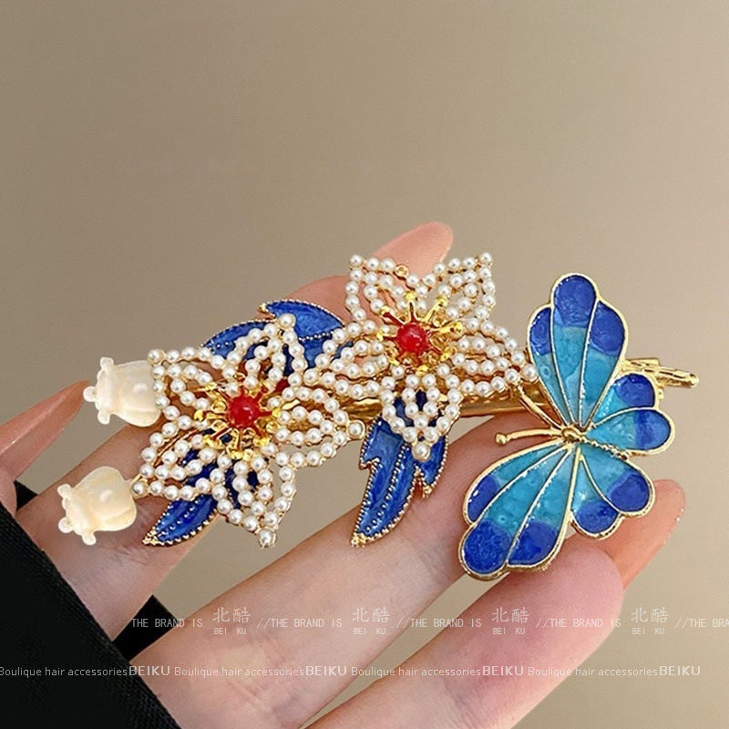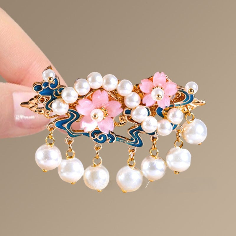 Orchid tassel headdress with side clips and new Chinese flower hairpins