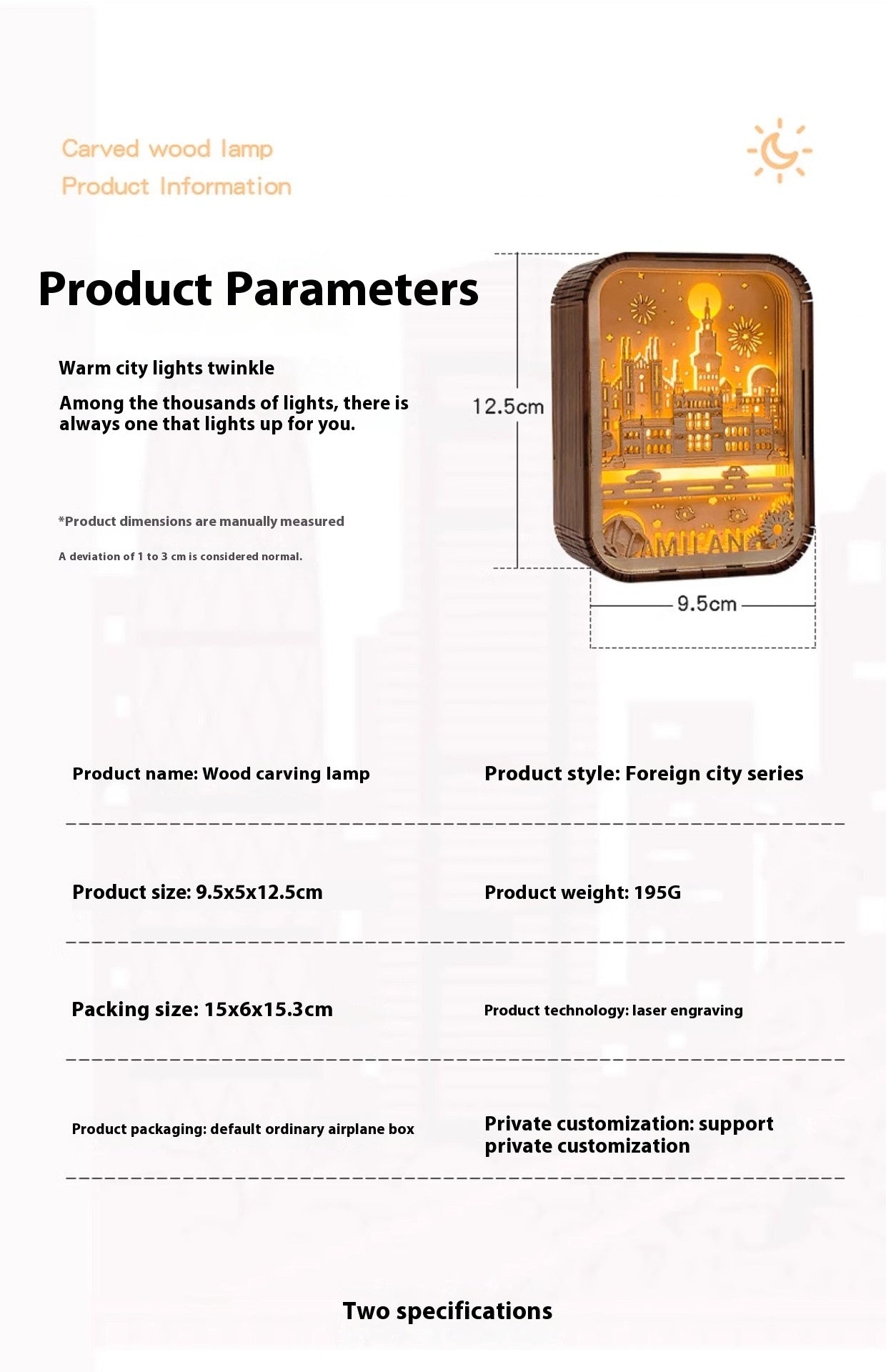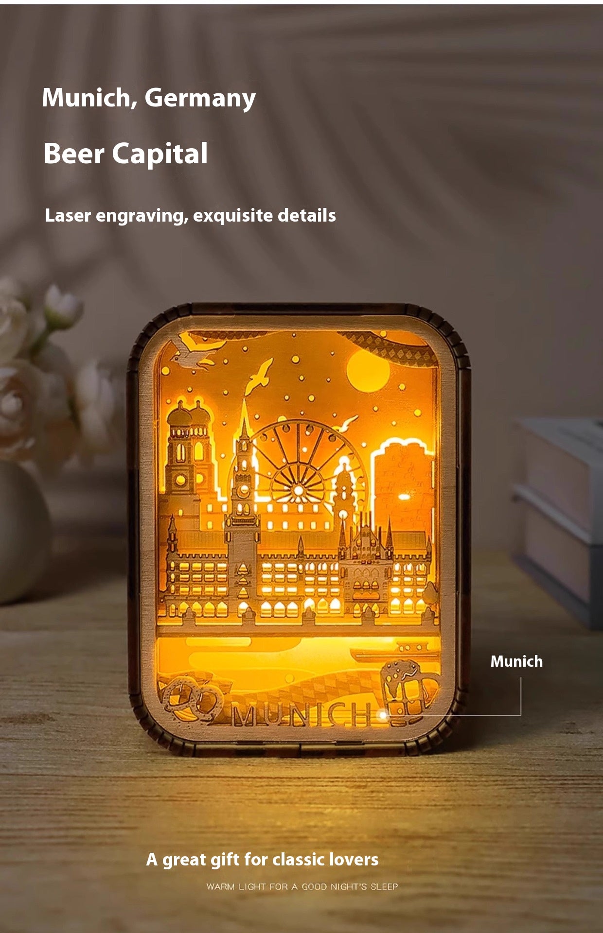 3D London City Wood Carving Lamp Night Light Mid-Autumn Gift